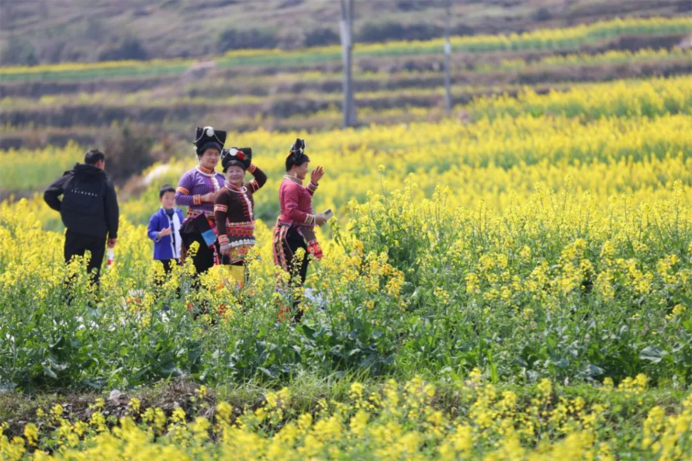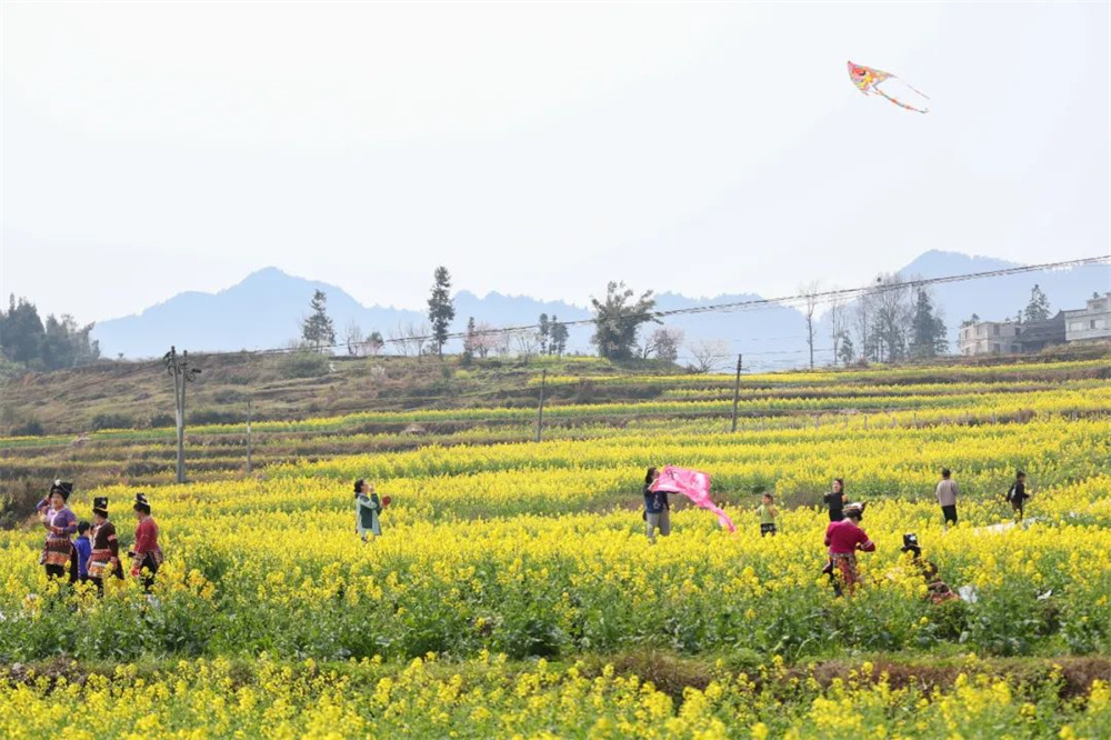 仲春时节,丹寨县兴仁镇台辰村种植的油菜花迎来盛开期,春风拂过金黄色的层层梯田,犹如一幅迷人的春日画卷,吸引不少市民和游客前来踏青赏花、户外游玩,乐享美好时光。
