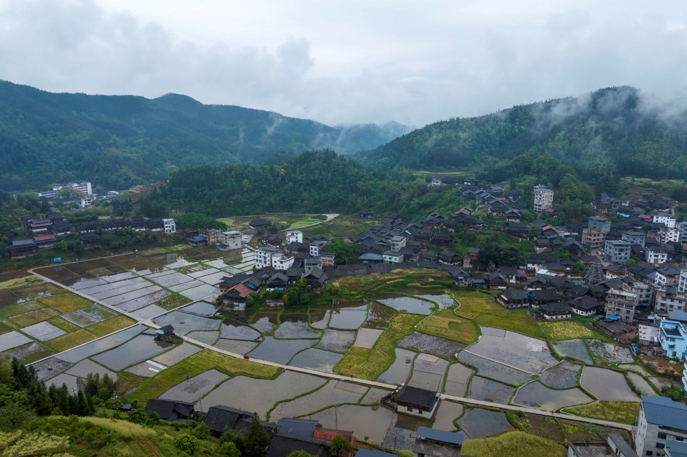 暮春之际,贵州省黔东南苗族侗族自治州从江县西山镇陡寨村被绚烂的三角梅装点得分外妖娆,小溪潺潺,步道蜿蜒,民居错落有致,鼓楼巍峨,花桥雅致,与翠绿的田园、连绵的山峦、潺潺的河流和宽阔的公路交织在一起,宛如一幅动人心魄的宜居宜业乡村美景图。
