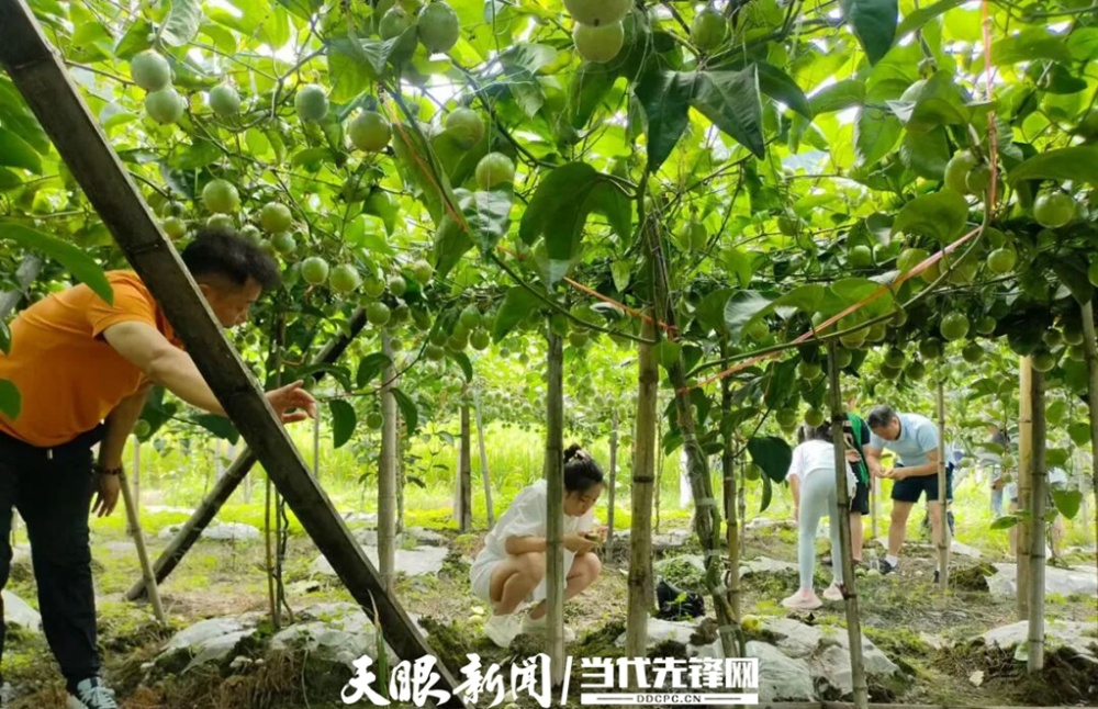 “第一次吃刚摘的百香果,酸酸甜甜的,口感特别好,比超市买得新鲜太多!”来自重庆的游客江先生边尝边赞。他坦言,原本是为“村超”而来,却意外收获采摘惊喜:“既感受了乡村足球的热血,又体验了乡村的慢生活,这趟行程太值了!”