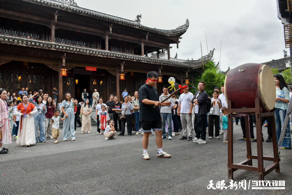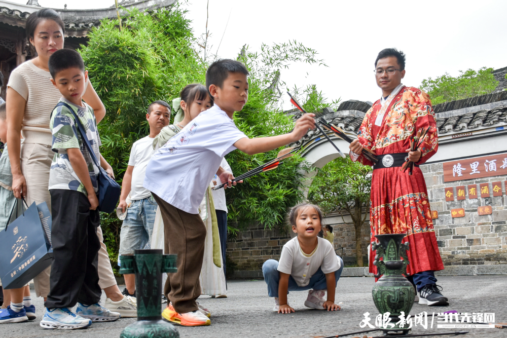 9月20日,锦屏县隆里古城举行“品古城六百年烟火·寻隆里非遗匠心”隆里古城开城暨古城游园会系列活动,投壶、蒙眼击鼓、对弈等传统游戏和画花脸等非遗体验吸引不少游客参与。隆里古城距今已有600余年的历史。今年,围绕文旅场景、文化演绎、文创开发、文娱体验四个维度对隆里古城进行全新打造,推出古城美食、沉浸式剧本杀、实景演绎、旅拍、研学、旅居等丰富的体验项目,让游客可动态深度体验隆里古城600年的烟火生活。