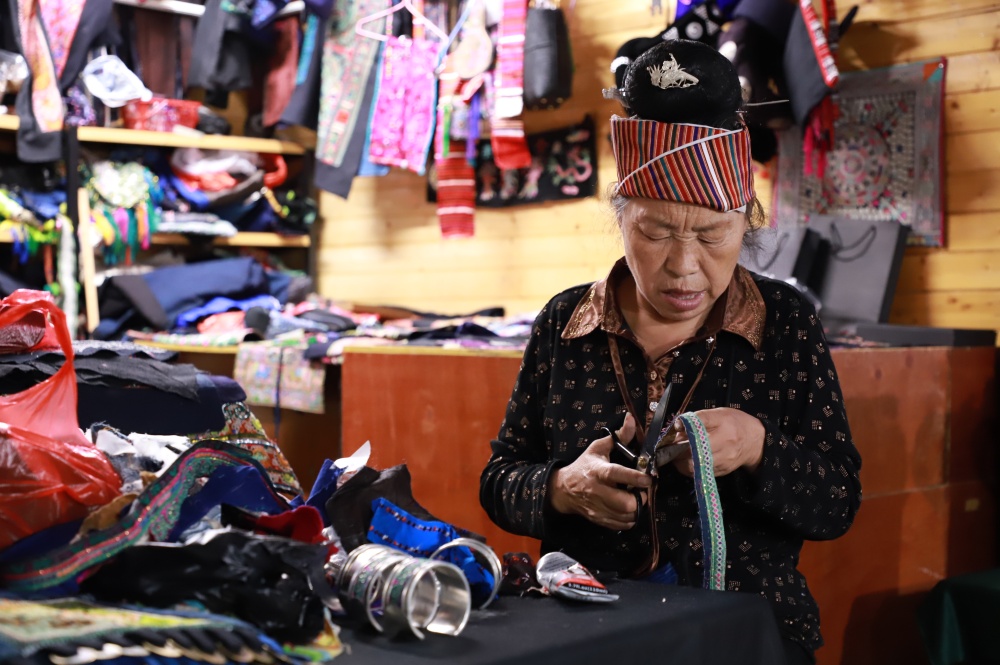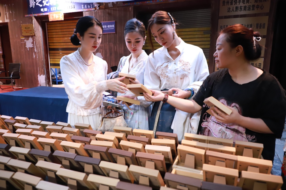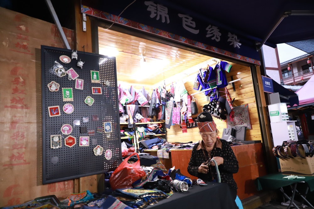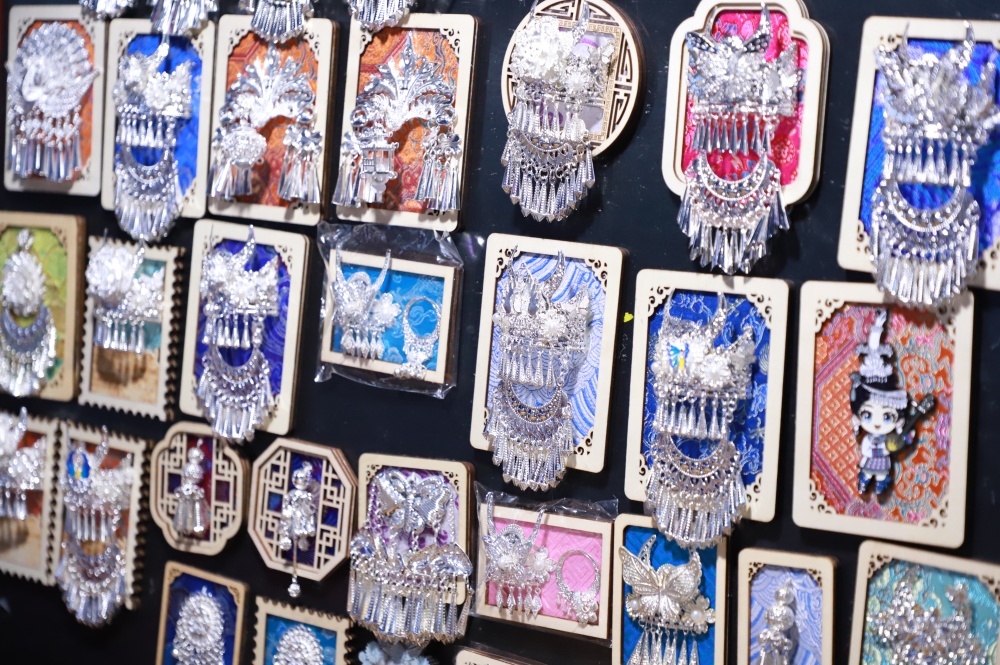 在苗绣传承人邰阿婆的展位前,刺绣笔记本、定制银饰等文创产品深受欢迎。“以前主要绣传统背扇,现在加入年轻化设计,很多游客都喜欢。”邰阿婆笑着说,当天就收到20多笔订单,销售额近2000元。