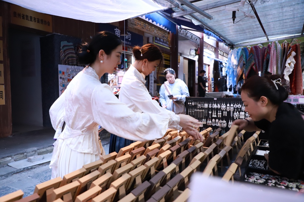节目编排负责人表示:“我们特意在演出中融入苗侗文化元素,希望让更多人感受到这里的独特魅力。”演出间隙,演员们还走进非遗集市,近距离体验银饰制作、蜡染等传统技艺,纷纷赞叹其工艺精湛。