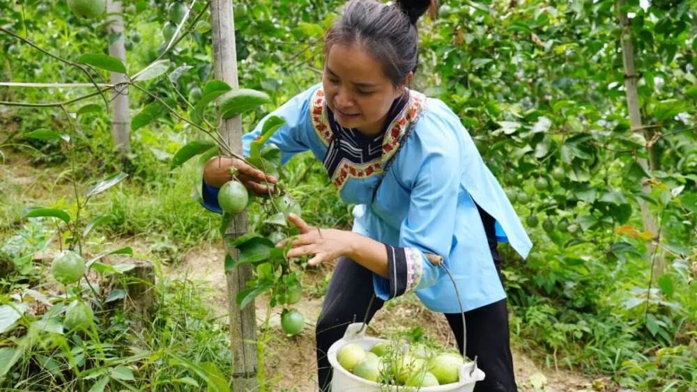 村民杨昌忠的5.5亩百香果地,660余株果树已为他带来超万元收入,“还能再卖两个月。”他笑着算起收入账。作为“村超推荐官”的杨昌香,则把家乡百香果卖出了“新花样”——从参与家人20多亩高山百香果种植,到通过自媒体“线上”推广,再到在县城开设农产品店收购销售,今年已累计卖出百香果10万余斤,用“线上+线下”模式为乡亲们拓宽销路。