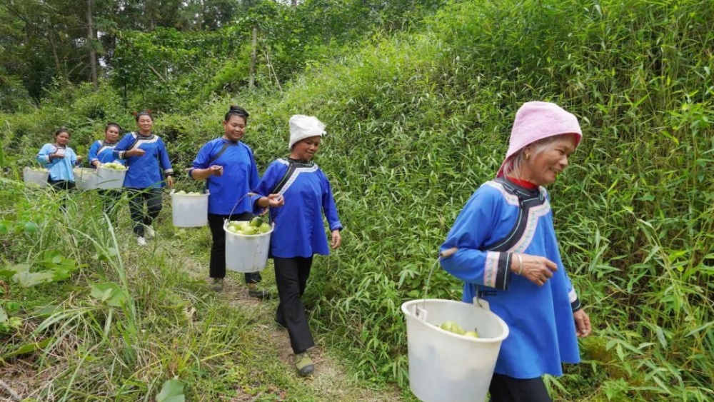 返乡青年吴勇的创业路虽起步坎坷,却为村里产业发展注入了强劲动力。疫情后他回乡种植30亩罗汉果,首年因缺乏经验亏损12万元,但他并未气馁,通过刻苦学习掌握技术,不仅成为村里的技术指导员,还牵头成立技术服务点,一边指导农户种植,一边收购销售果品。如今,俾堵村百香果种植面积达300亩,吴勇已帮助村民销售超1万斤;400亩罗汉果进入采收季,他的服务点预计收购26车,产值约260万元。“要打出我们高山百香果和罗汉果的品牌”,吴勇的话语里满是信心,也道出了俾堵村以产业兴村、助农增收的共同目标。
