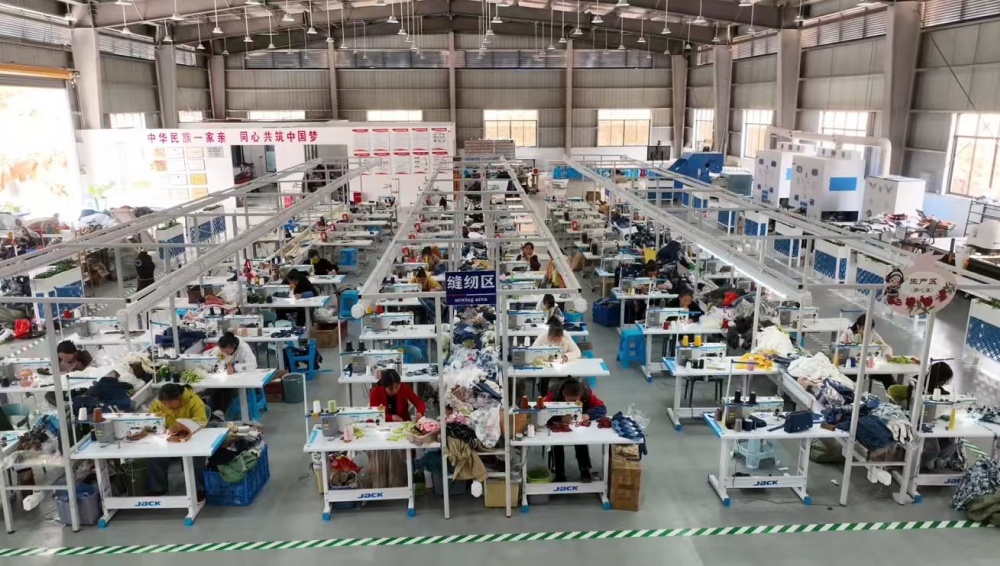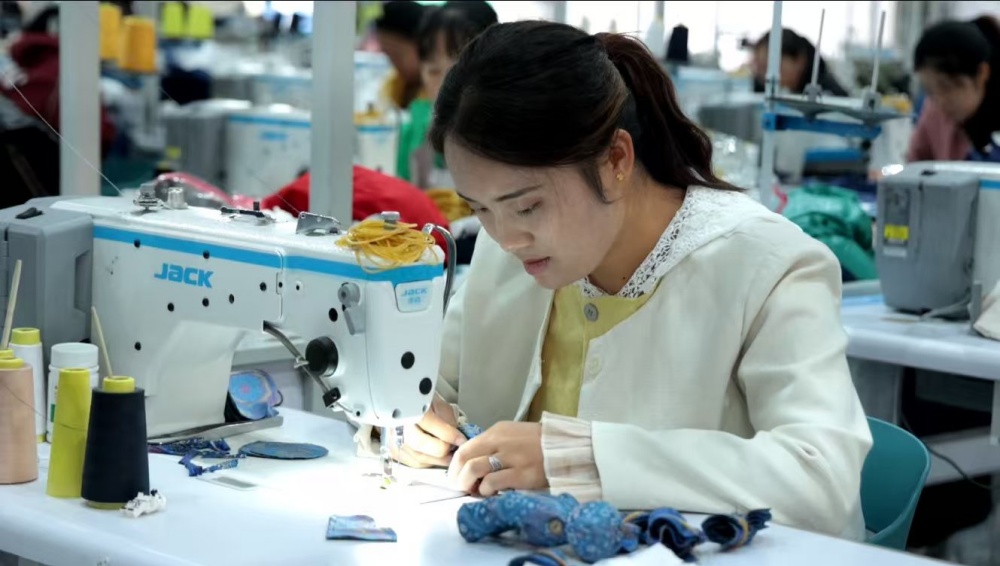 在贵州绣娘文化有限公司的生产车间内,五彩丝线在指尖流转,绣针在布面上轻盈穿梭,绣娘们正专注地为一批国庆前必须交付的订单加紧作业。缝纫机飞速运转,生产线上井然有序,各类布艺玩具、服饰和箱包陆续成型下线。