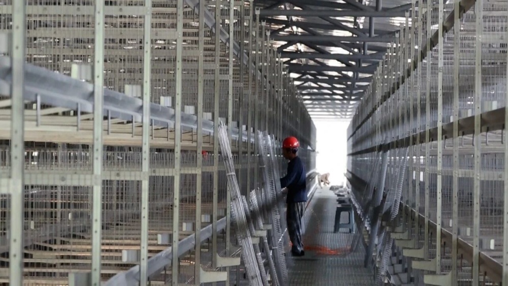三穗20万羽蛋鸭高标准示范通过智能化环控系统、自动化饲喂设备和数字化管理平台的集成应用,实现了养殖效益和环保效益的协同突破,构建起生态循环养殖新模式。 “现在我们这栋3号舍是一个8乘6列的蛋鸭养殖设备,养殖量是67000羽,配备了自动通风、自动清粪、自动喂料等一系列的配套设施。”青岛鑫光正牧业有限公司施工员程振平说。