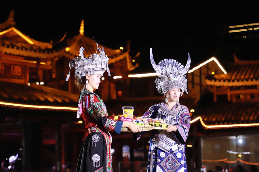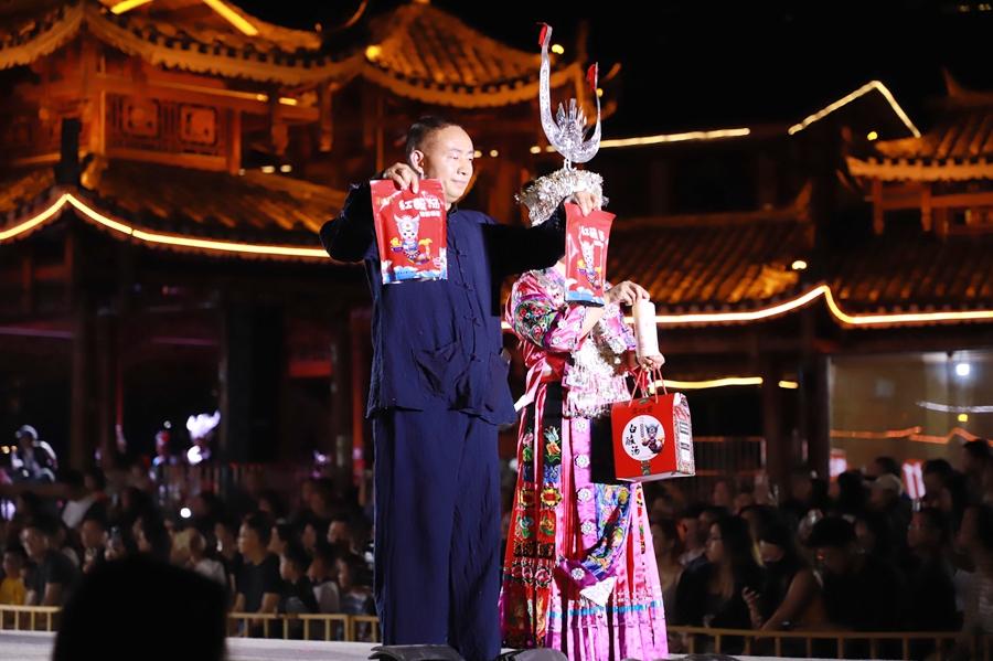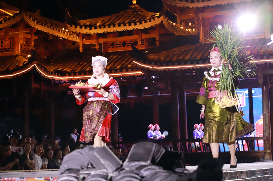 苗绣缀稻穗,手捧农特产品……9月28日晚,凯里市苗侗风情园的T台迎来了一场别开生面的“时装秀”。聚光灯下的“主角”并非华服名模,而是来自田间地头的平良贡米、酸汤原料、中药材等“香饽饽”。这场“贵州村T村集体经济专场秀”,以T台为桥梁,促进产销对接,打通农特产品出山“快车道”。