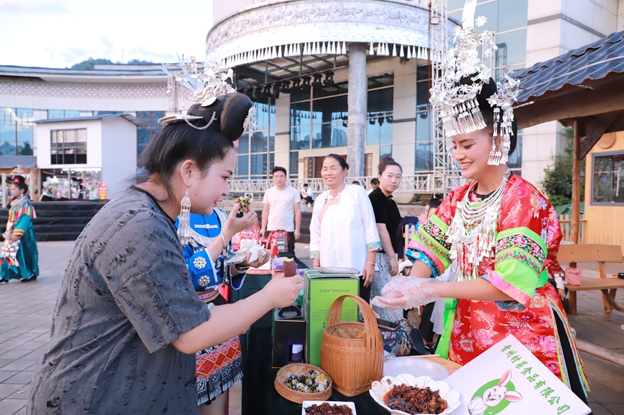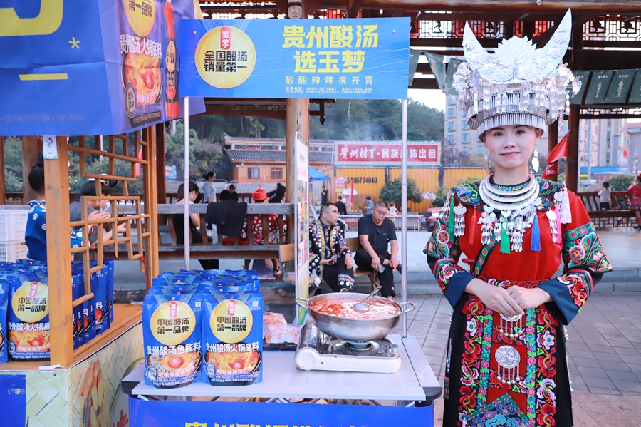 T台不仅是展示窗口,也成为合作洽谈的平台。走下T台的贵州玉梦食品(集团)有限公司总经理杨政州,随即与来自东北的合作商展开交流。“通过‘村T’,我们的酸汤走上了中国国际时装周,还走到了法国米兰、日本大阪等地。”杨政州说,“文旅+农特”联动模式,让更多消费者体验到黔东南的生态与美食,前来洽谈的商家持续增多。