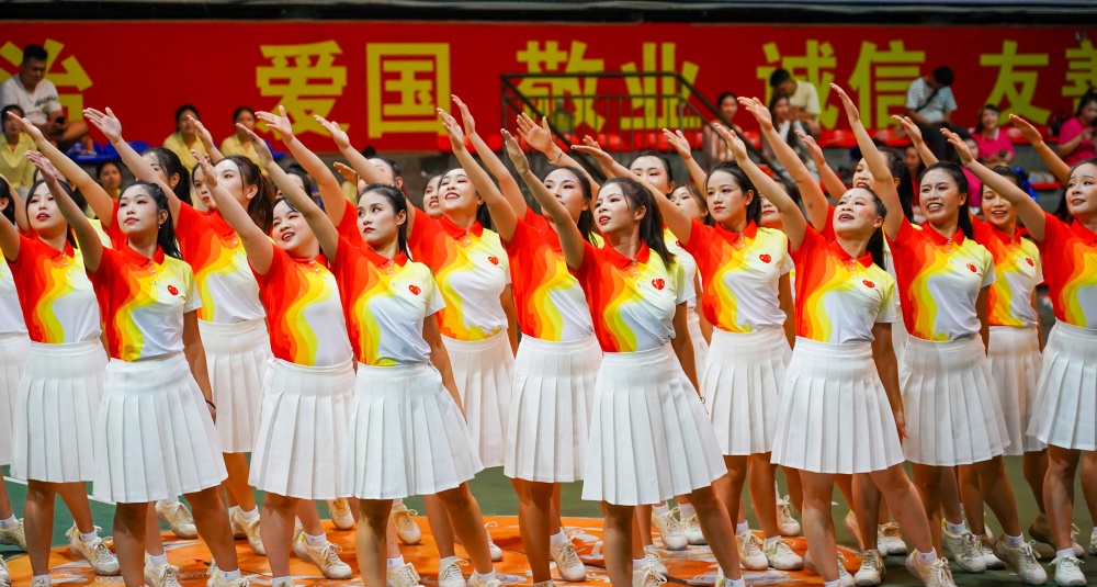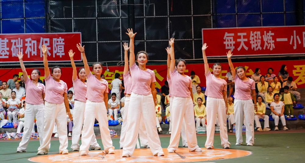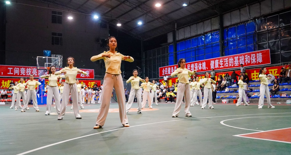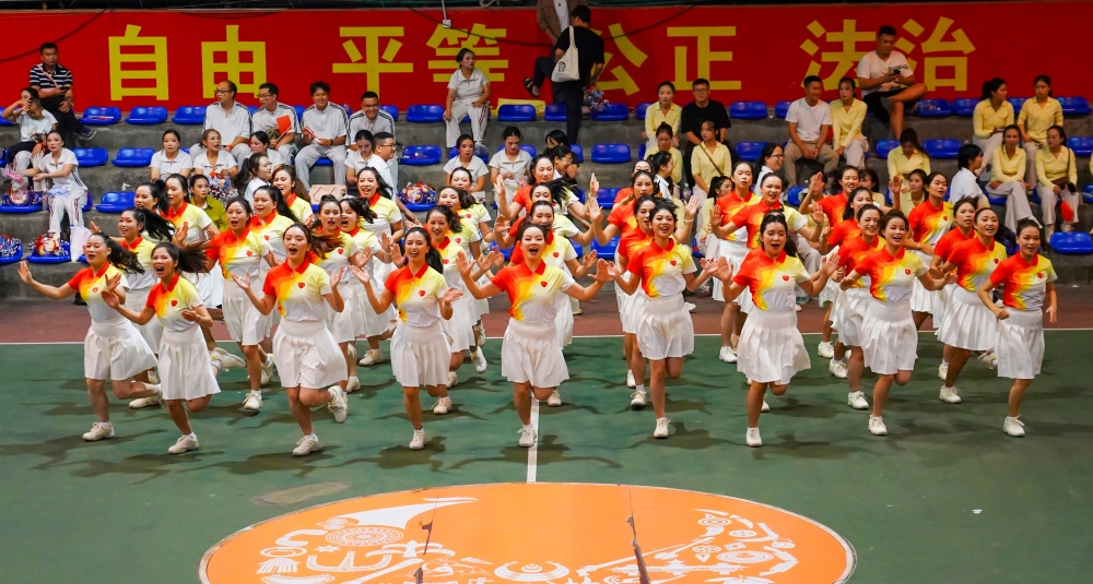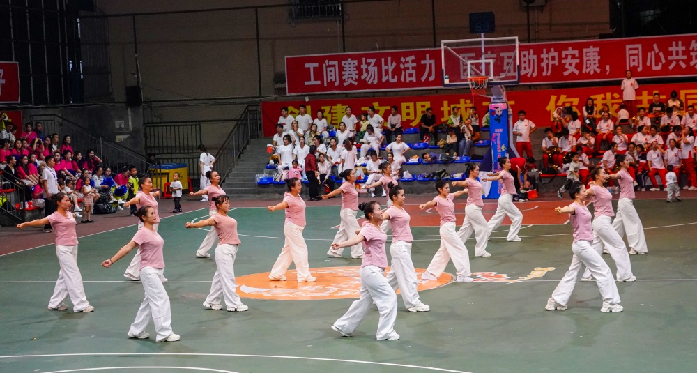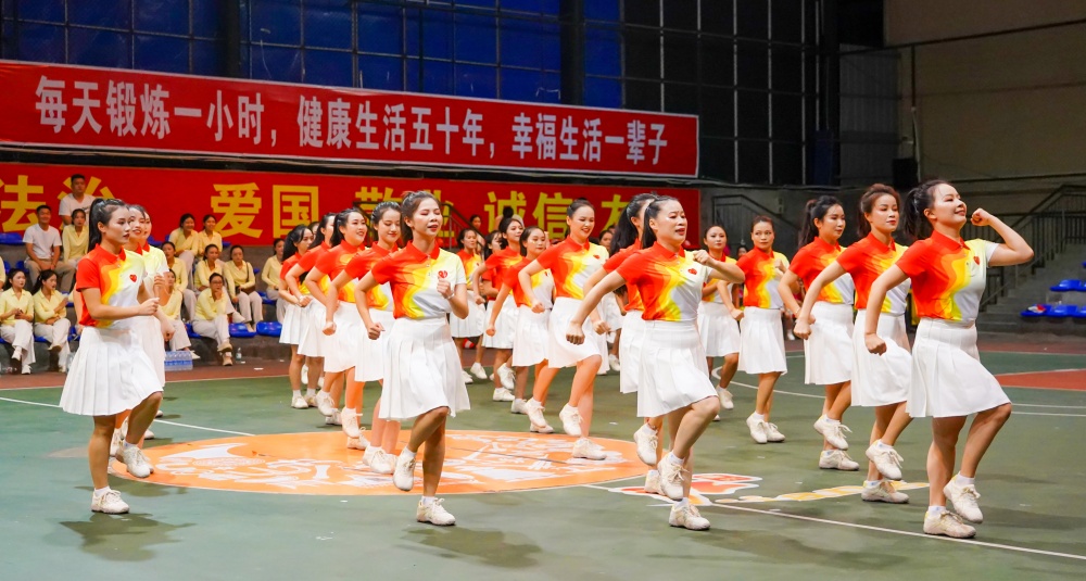 当日,贵州省黔东南苗族侗族自治州从江县举行以“快乐工作 健康生活”为主题的职工工间操比赛,来自全县各单位的9支代表参加比赛,展示了教职工良好的精神风貌和全民健身运动的新成果。