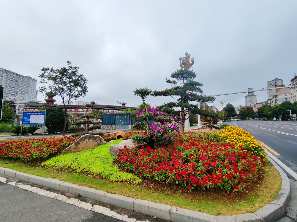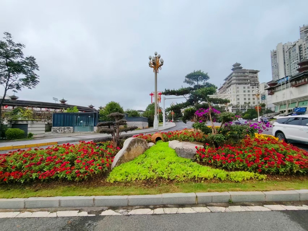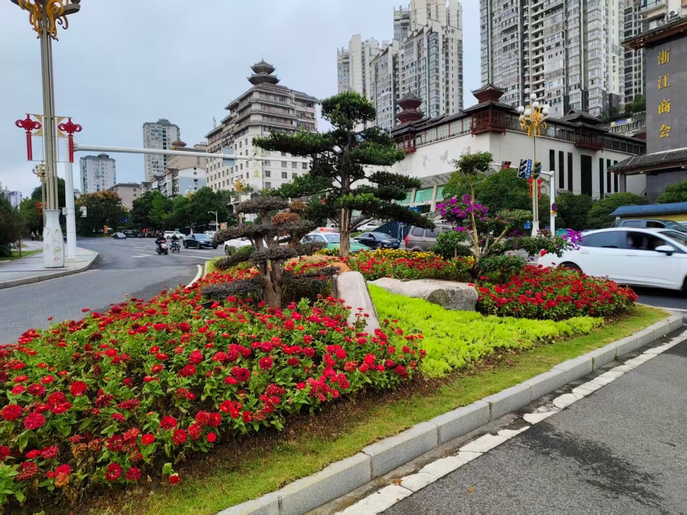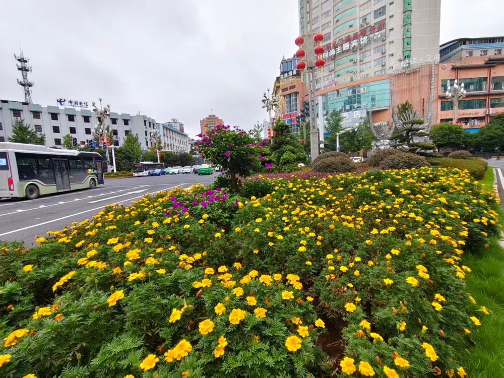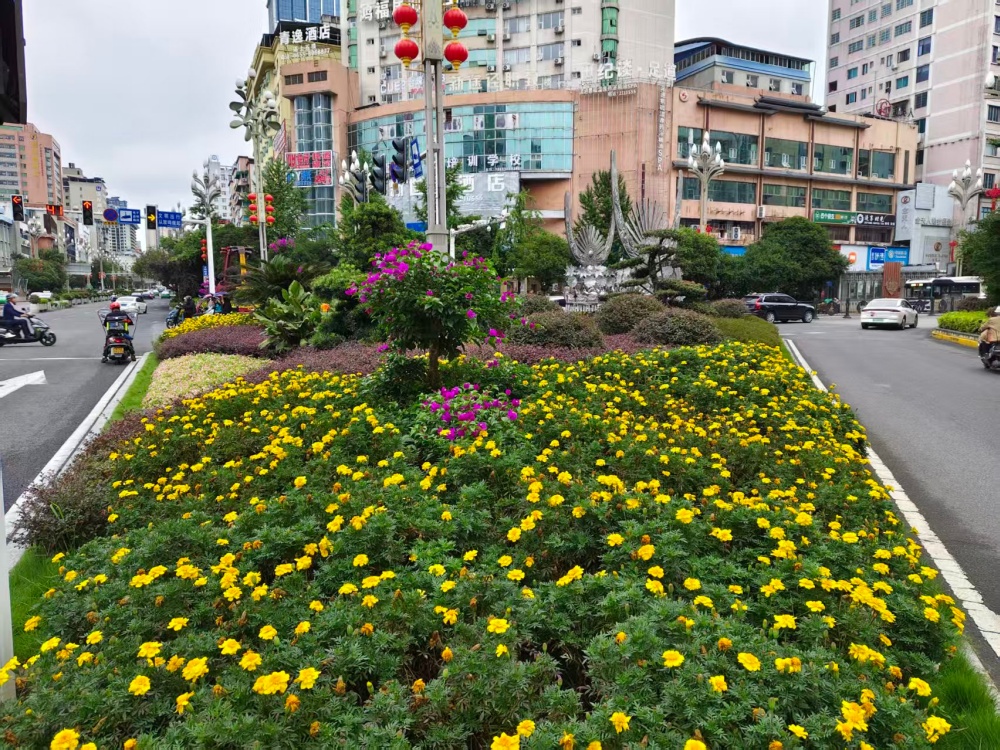 在大十字路口、万博广场、行政中心广场等地,万寿菊、千日红、百日草等10000株色彩斑斓的花卉竞相绽放,与新增的3块国庆主题展板相映成趣,提前点燃了节日的热烈气氛。