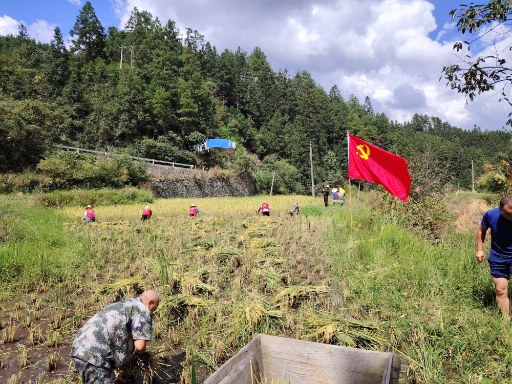 近日,在大山的深处,一场亲民的收割行动正悄然的开展着。两汪乡政府党支部与空烈村党支部联合开展主题党日活动,将“为民服务”的宗旨从会议室延伸至田间地头,组织党员干部深入困难群众的农田,全力协助开展秋收工作。