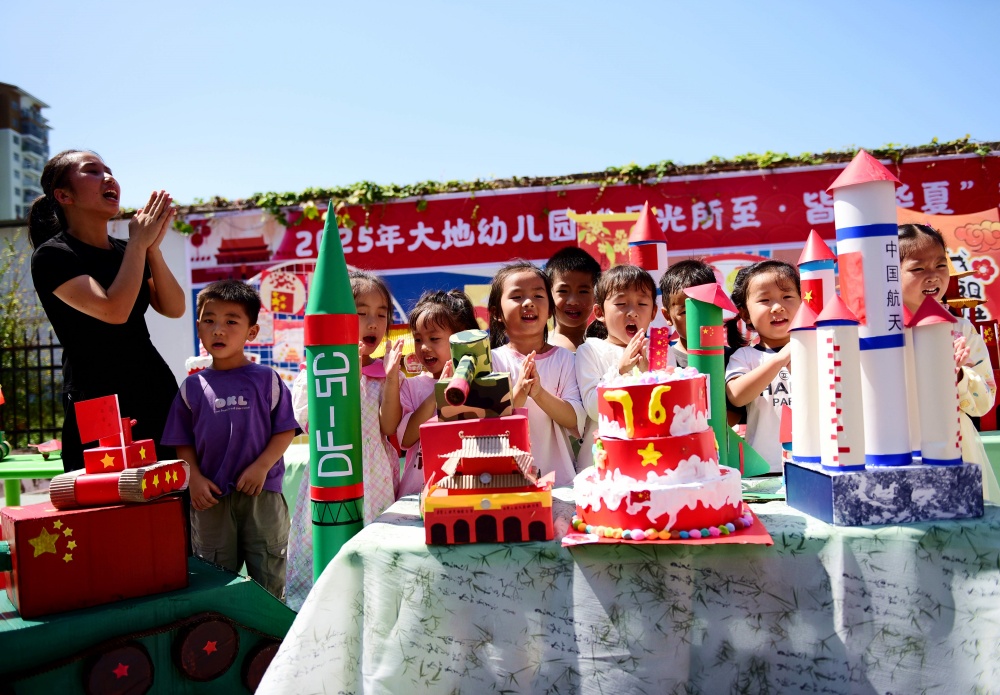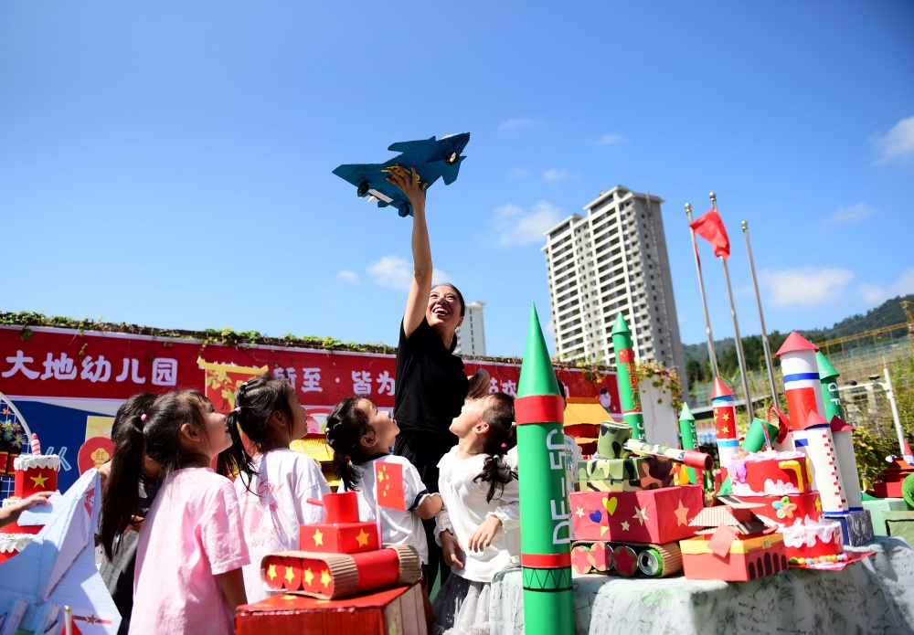 国庆中秋“双节”将至,贵州省黔东南苗族侗族自治州从江县大地幼儿园通过学唱爱国歌曲、观看展览、与国旗合影、及手工创作等形式,共庆佳节,表达对祖国的热爱与祝福。