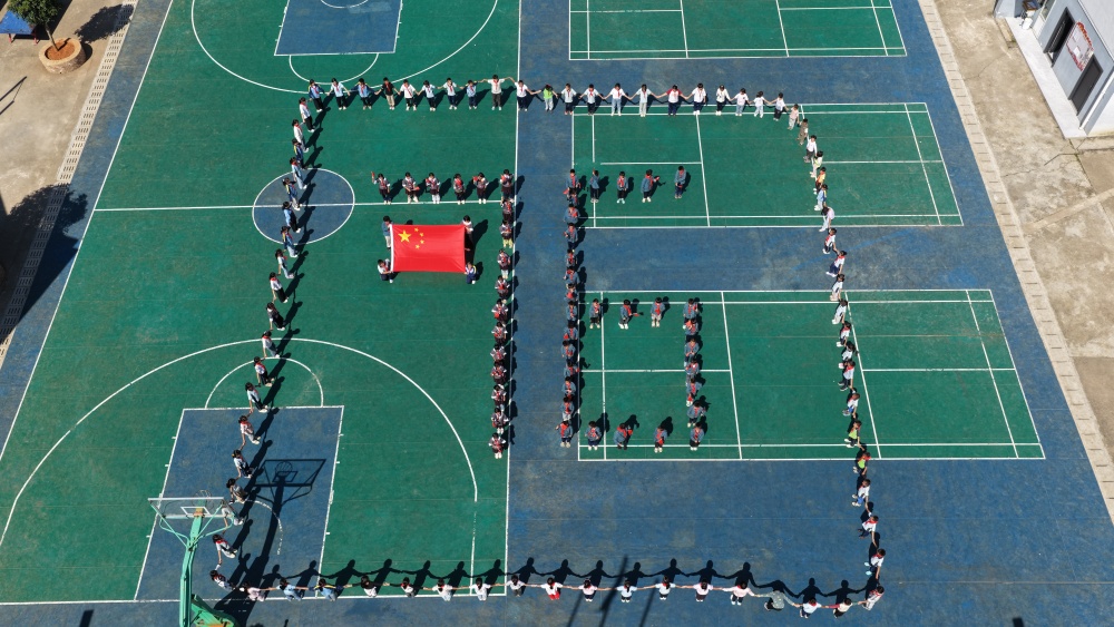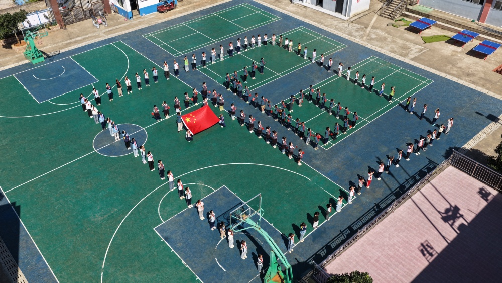 10月1日,为庆祝中华人民共和国成立76周年,麻江县各族群众共升一面旗,共唱一首歌,共同祝福伟大祖国繁荣昌盛。
