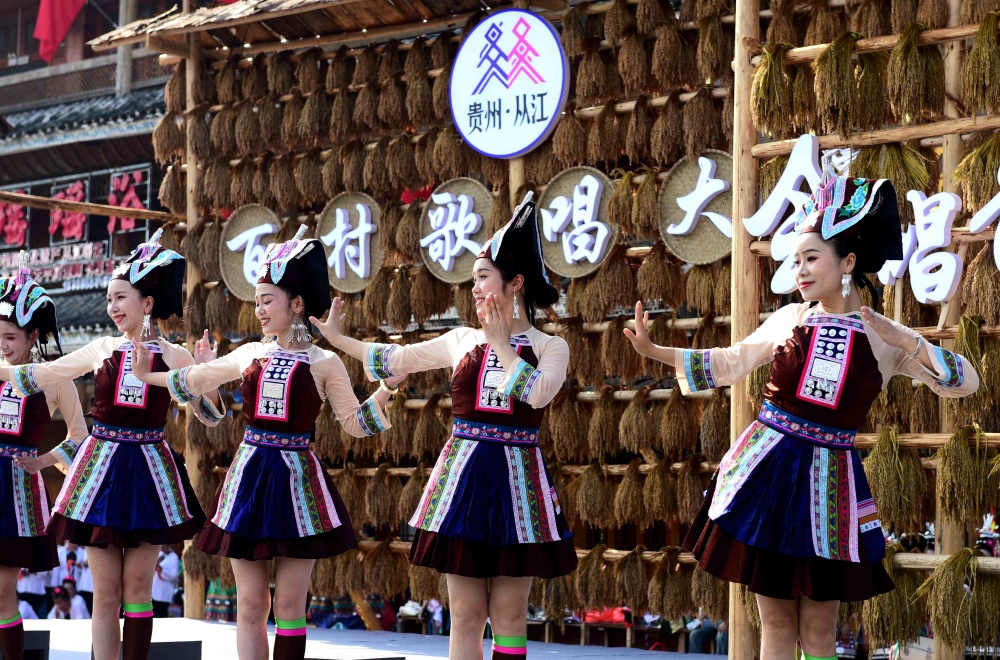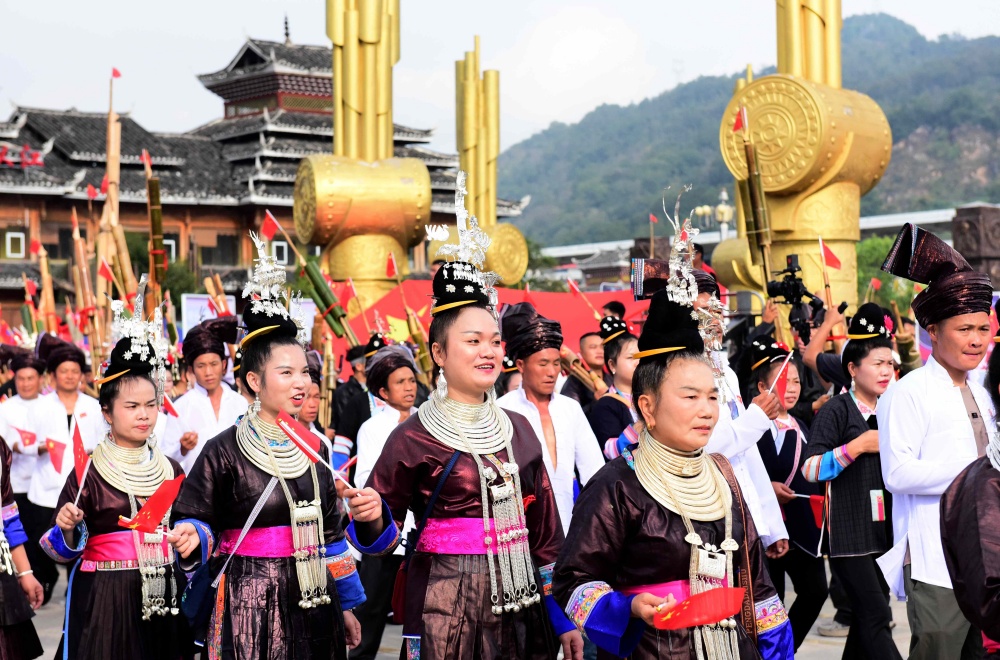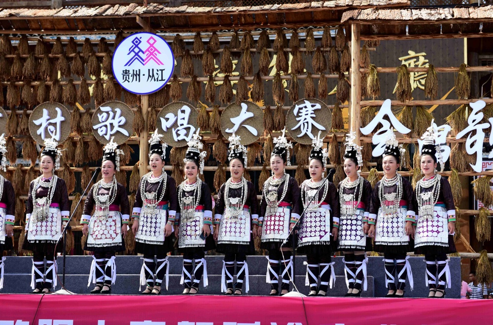 10月1日,贵州省黔东南苗族侗族自治州从江县举行贵州从江第十八届侗族大歌节暨百村歌唱大赛欢度国庆节。吸引贵州省从江县、黎平县以及广西三江、融水等县的93支侗族歌队、2033名歌手前来参加,场面热闹非凡。