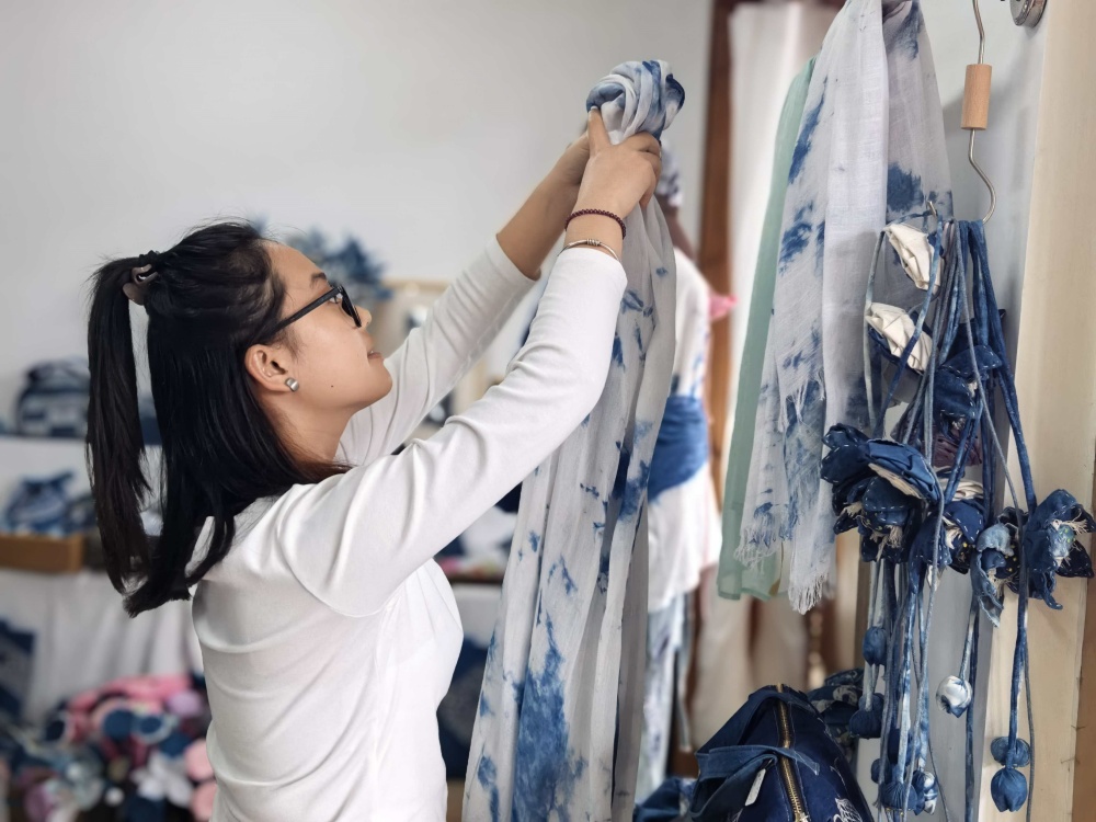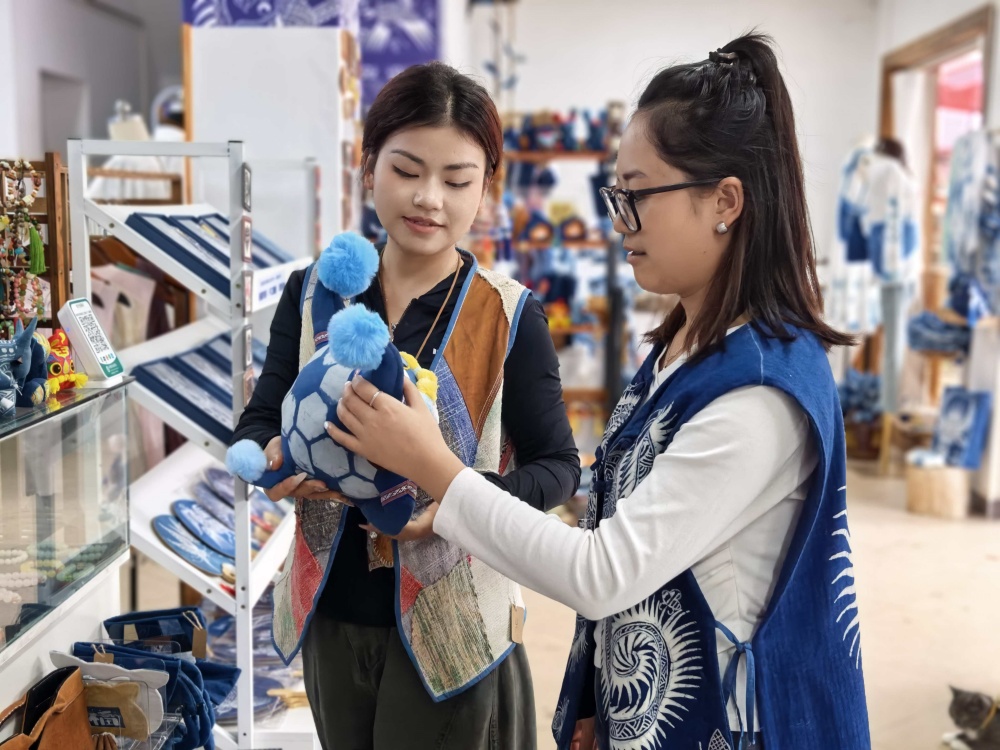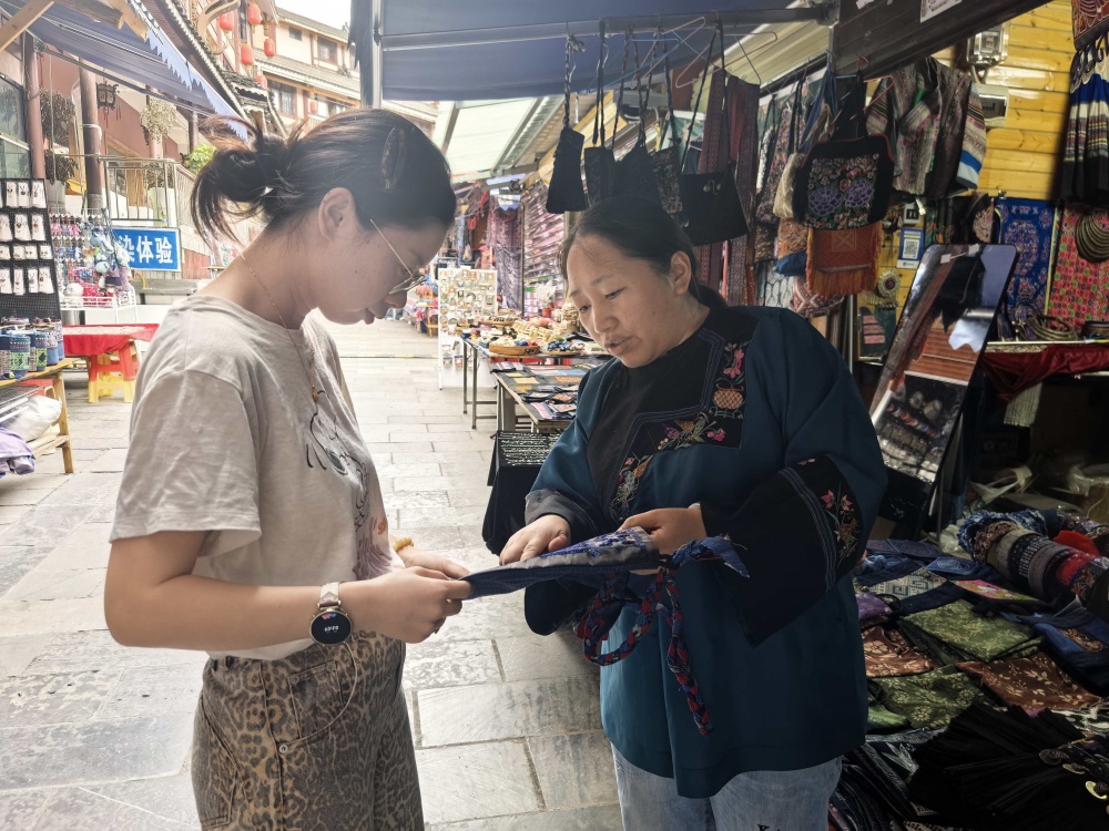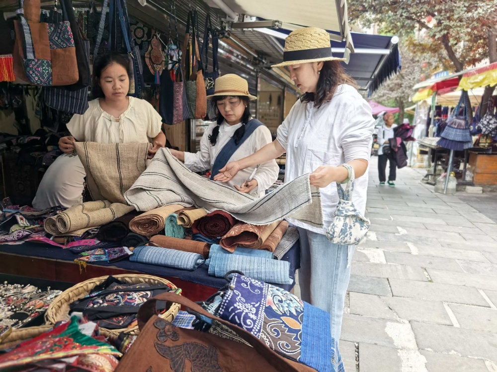随着中秋国庆双节的到来,绣里淘非遗集市的热度持续攀升。众多店铺里的非遗单品备受游客青睐,尤其是正值秋季,蜡染的围巾和马甲等商品迎来销售旺季。