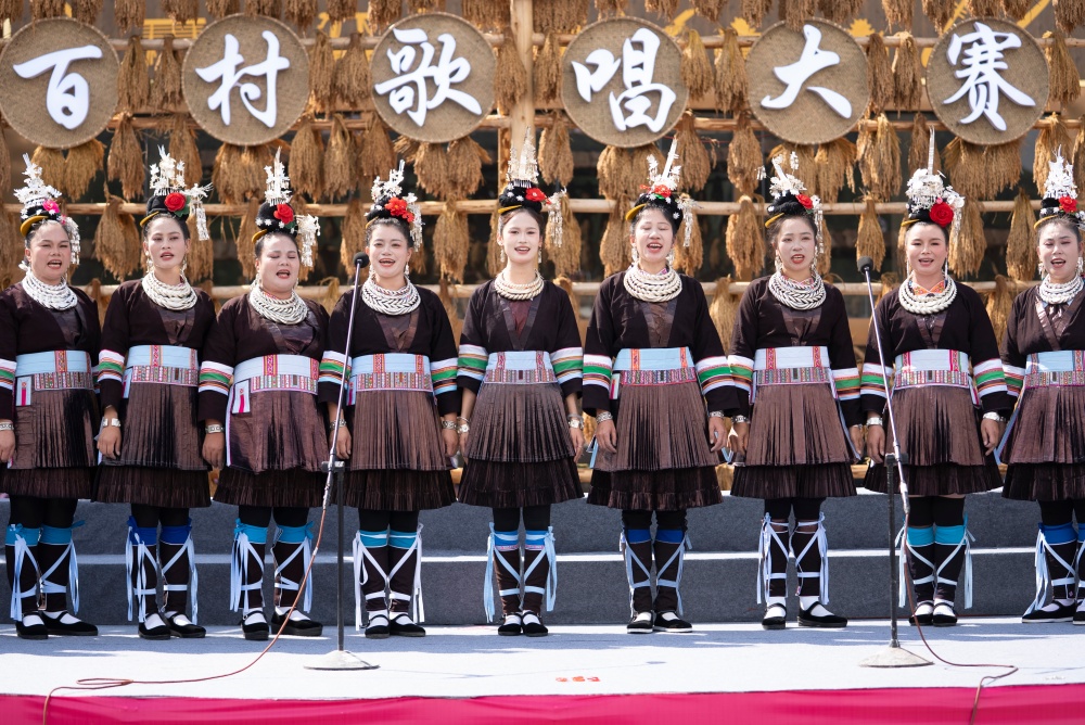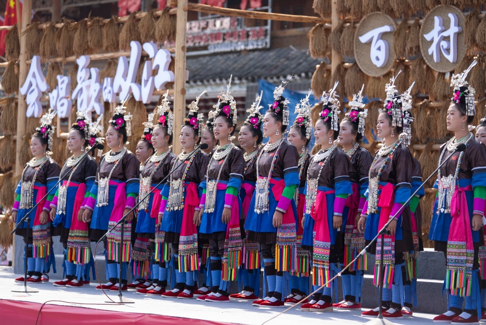10月1日,贵州省黔东南苗族侗族自治州从江县举行贵州从江第十八届侗族大歌节暨百村歌唱大赛。此次大赛共有来自贵州省从江县、黎平县以及广西三江、融水等县的93支侗族大歌队、2033名歌手参加比赛。据悉,侗族大歌是一种多声部、无伴奏的民间合唱形式,2009年被列入联合国人类非物质文化遗产代表作名录。