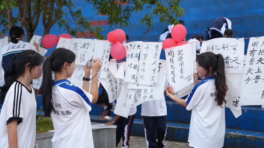 剑河县民族中学举办的“中秋诗韵进校园,笔墨书香贺佳节”主题活动,为传统节日注入浓厚文化气息。猜灯谜时的凝神思索、书法展示中的笔走龙蛇、心愿墙上的真挚寄语、灯笼DIY里的巧思妙想,一系列互动项目让学生们踊跃参与,活动现场笑语盈盈,满是节日的热闹与温情。“要让传统文化‘活’在校园里。”校长周才敏在接受采访时道出活动初衷,“中秋节承载着团圆、感恩的文化内核,我们正是想通过诗词吟诵、笔墨创作这些沉浸式体验,让学生亲手触摸传统、真切感知节日魅力。”这番话不仅点明了活动的深层用意,更彰显出学校以文化人、以美育人的教育初心——在传统节日的浸润中,潜移默化地培育学生的文化素养与审美感知。