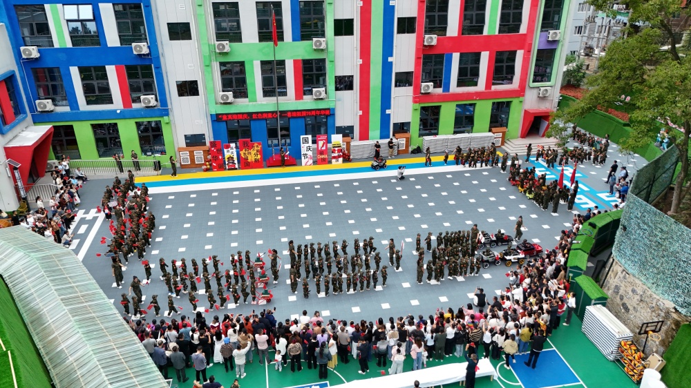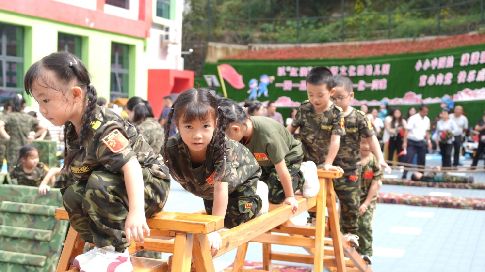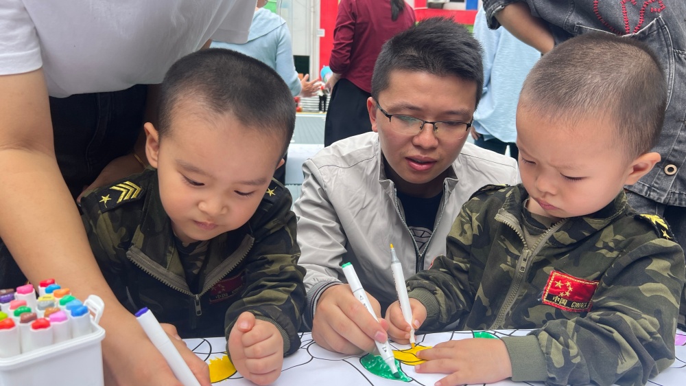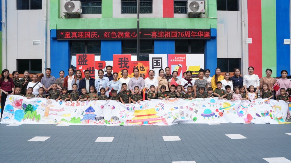 在县城关第十幼儿园,一场“爱国亲子嘉年华”点燃童真热情。庄严的升旗仪式拉开序幕,孩子们身着迷你“军装”,迈着稚嫩却坚定的步伐,尽显新时代幼苗的蓬勃朝气。小班的亲子手工、中班的“百米画卷绘祖国”让孩子们用巧手描绘对祖国的热爱,大班则以“重走长征路”情景体验,引导孩子们在互动中传承红色基因、赓续红色血脉。“能和孩子一起画心中的天安门,特别有意义。”参与“百米画卷”创作的家长张良佳感慨,“不仅拉近了亲子距离,更在孩子心里悄悄种下了爱国的种子。”
