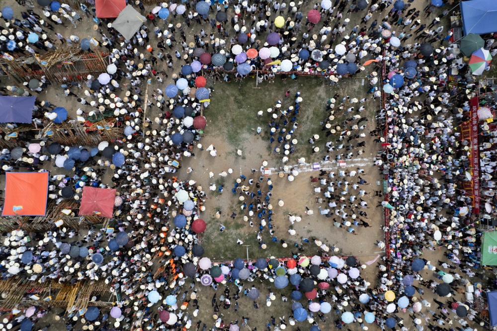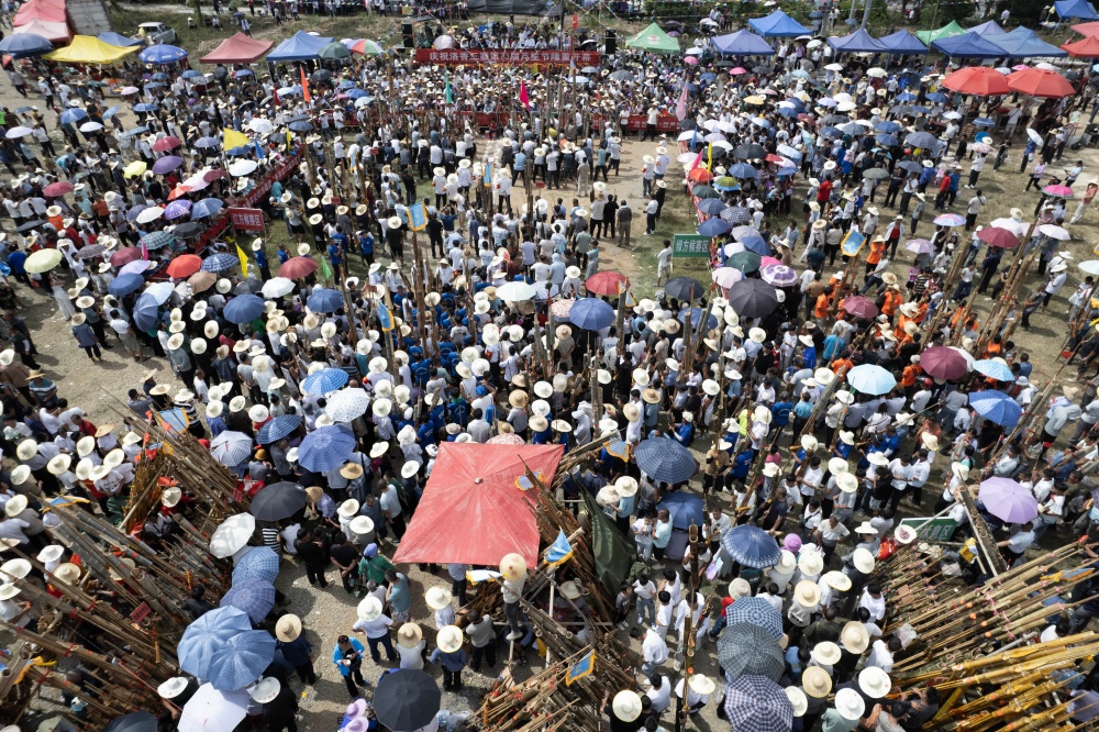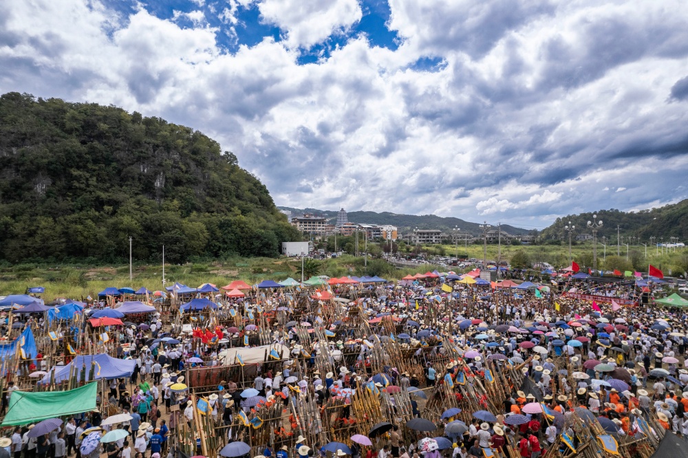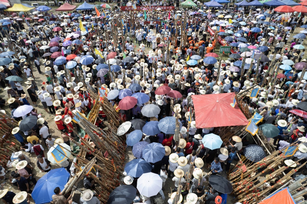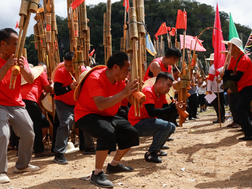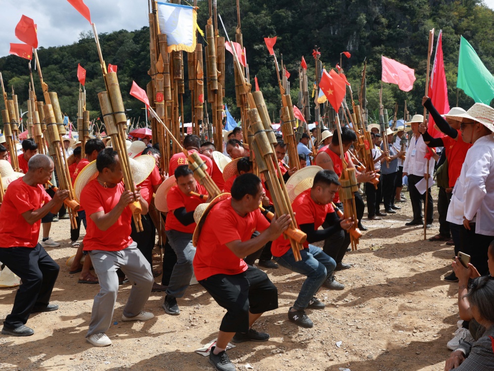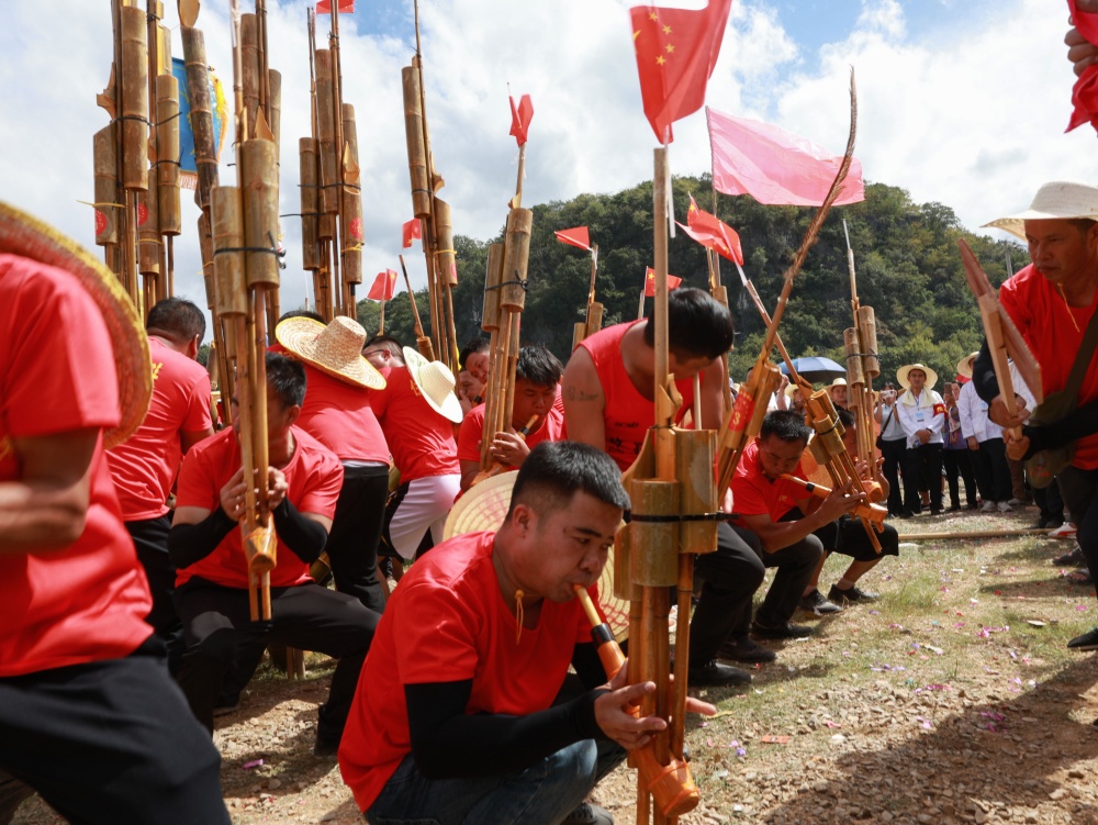 10月6日,贵州省黔东南苗族侗族自治州从江县洛香镇洛香村平王寨、中寨、老寨热闹非凡,一场兼具国庆、中秋双节喜庆氛围与民族特色的芦笙大赛正式启幕。来自贵州黎平、邻省广西及周边乡镇村寨的苗族、侗族228支芦笙队齐聚,以传统竞技共庆佳节。