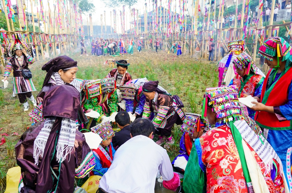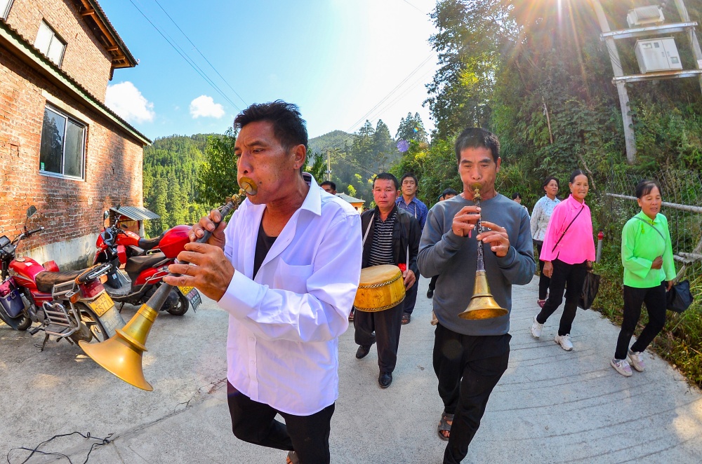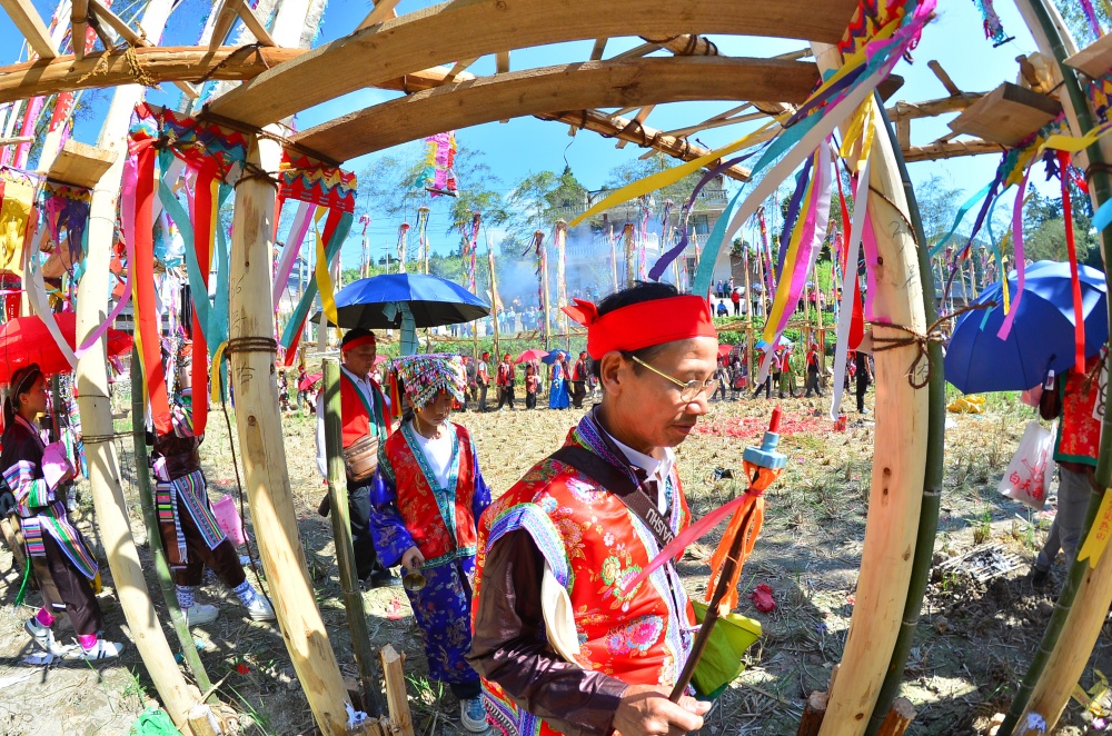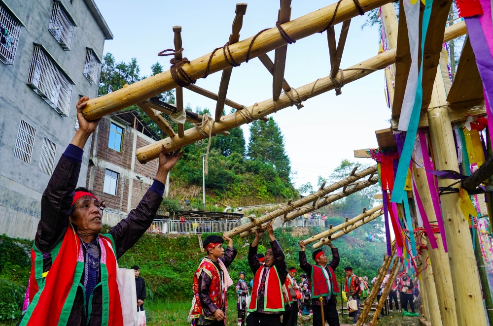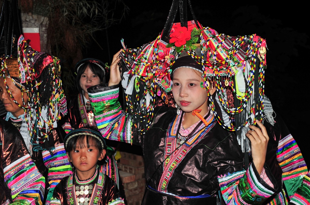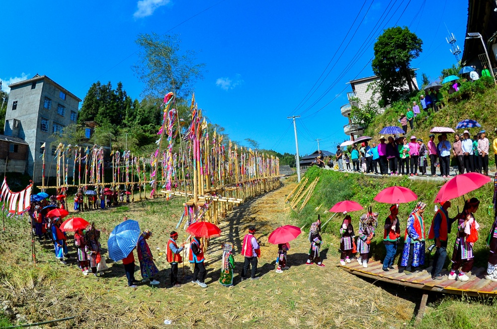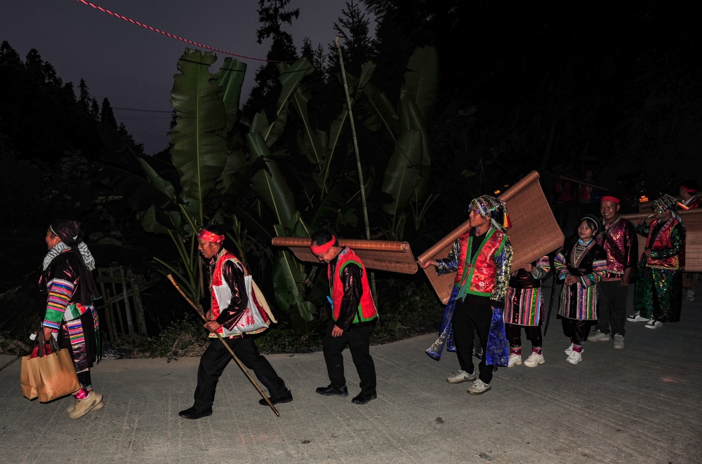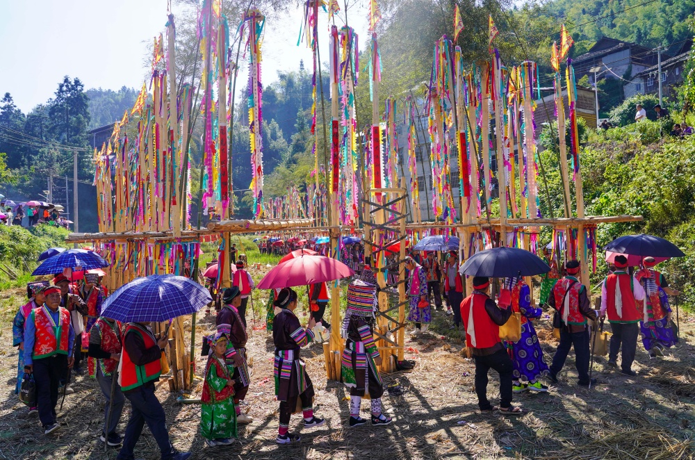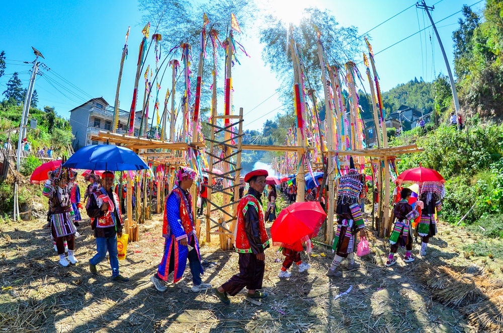 10月5日,瑶族群众在贵州省从江县西山镇秋卡瑶寨参加“度戒”活动。