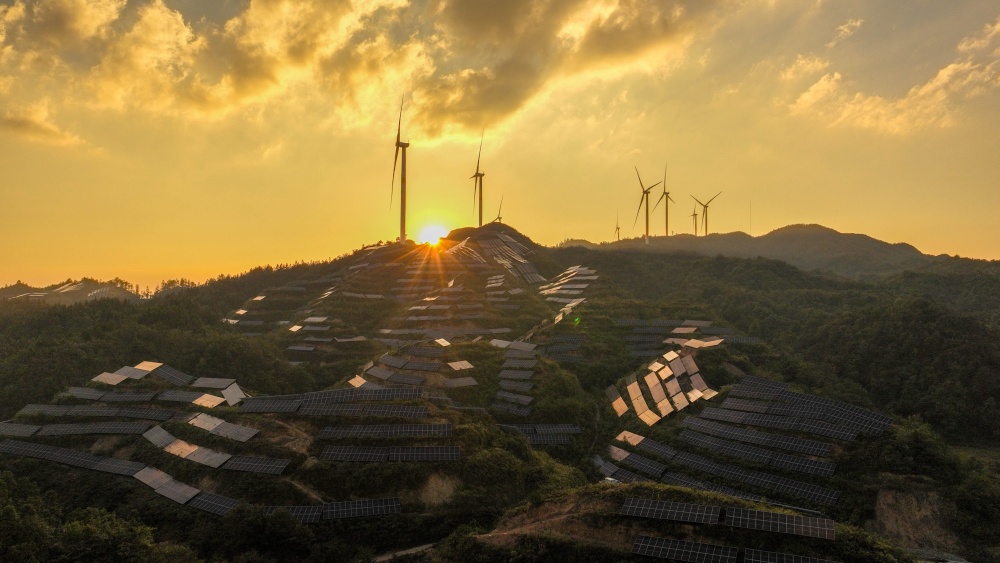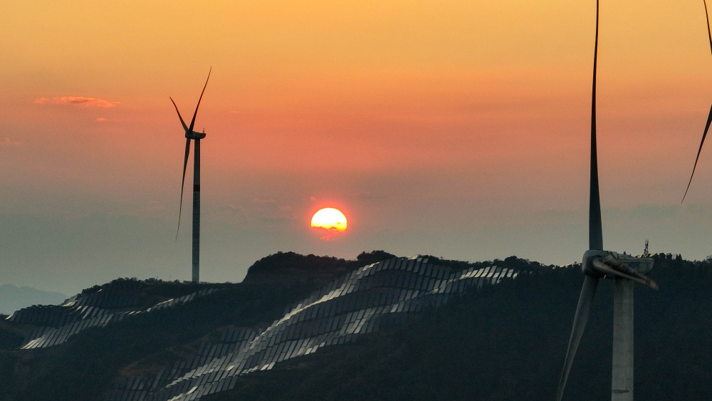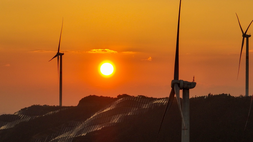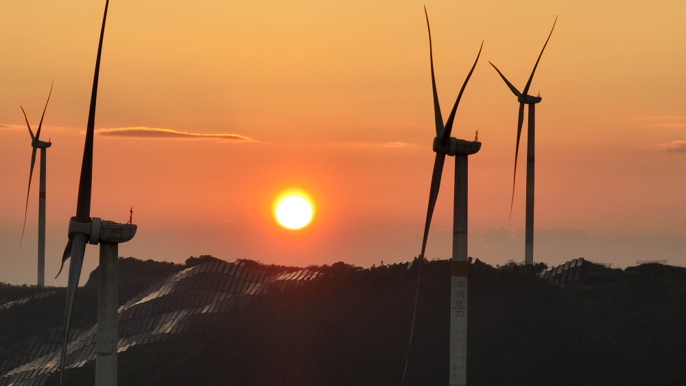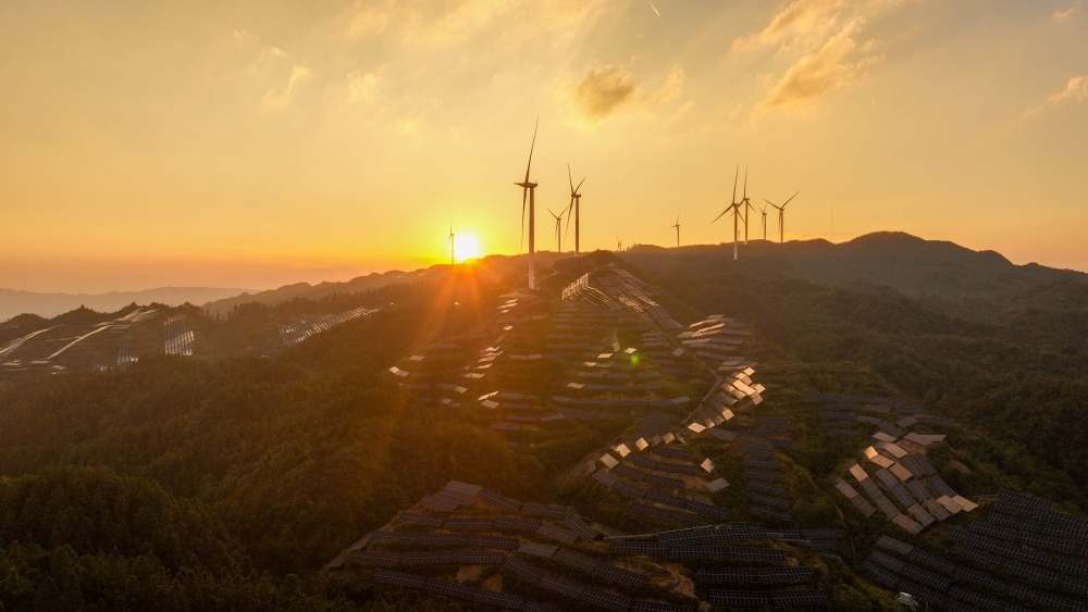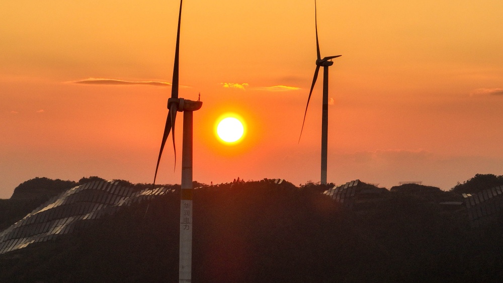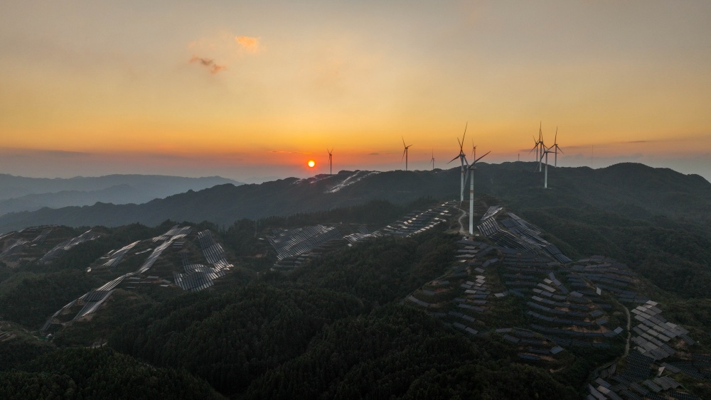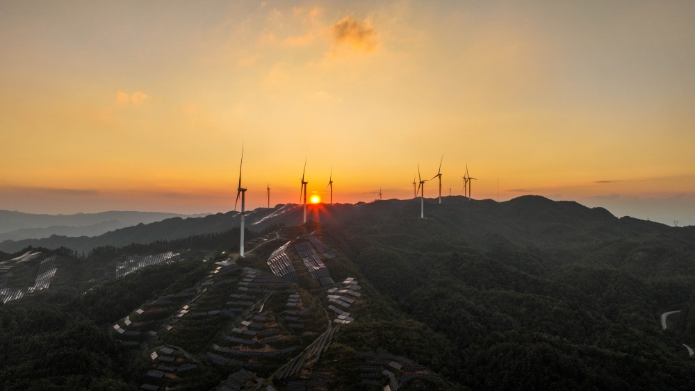 10月10日,在贵州省黎平县九潮镇的华润电力久顺风电场,风机迎风招展,光伏板吸光,分别将秋风和秋阳化为源源不断的绿色动能。近年来,贵州省黎平县依托山地风能资源禀赋,将风电开发与乡村旅游相结合,带动当地群众通过民宿接待、农特产品销售实现增收,走出了一条生态美、产业兴、百姓富的可持续发展新路。