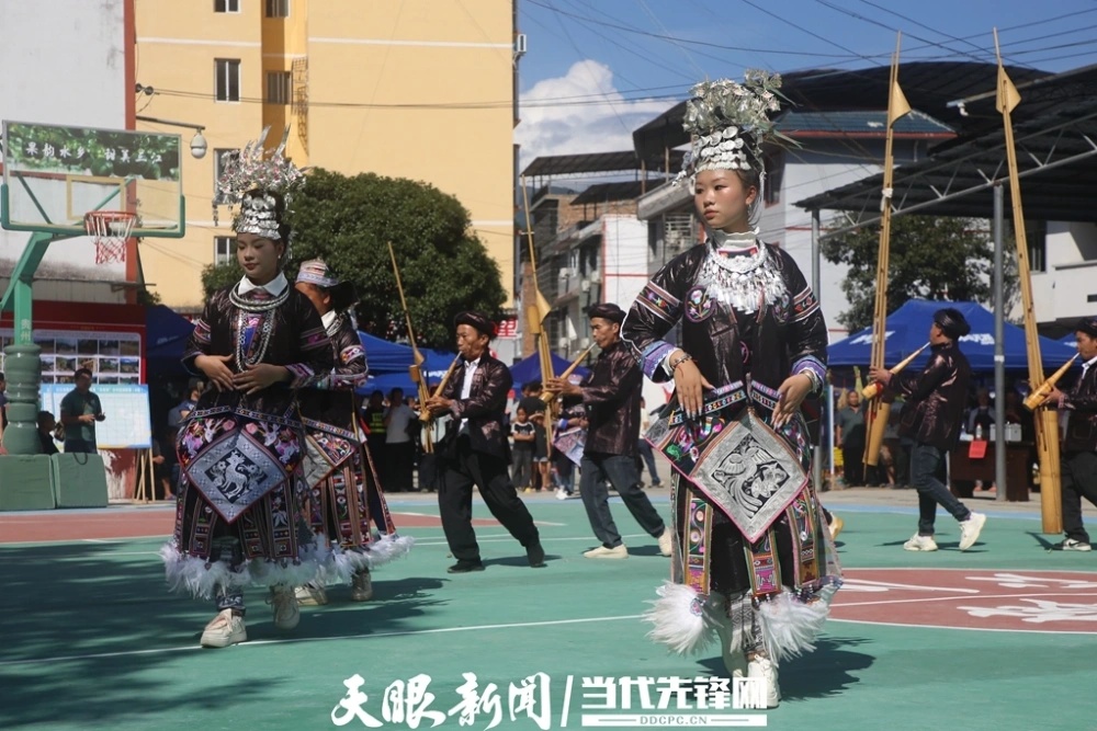 来自13个村的村民们身着特色服饰,精神抖擞地汇聚在一起。各村啦啦队更是成为现场一道亮丽的风景线,她们不仅带来了活力四射的助威表演,还精心携带了本村的罗汉果、蜡染、腌鱼、山核桃等种类丰富的农特产品来到现场展示。这些充满乡土气息的农特产品,不仅让现场观众直观感受到了三江水族乡的丰收成果,也为活动增添了浓浓的地域特色。