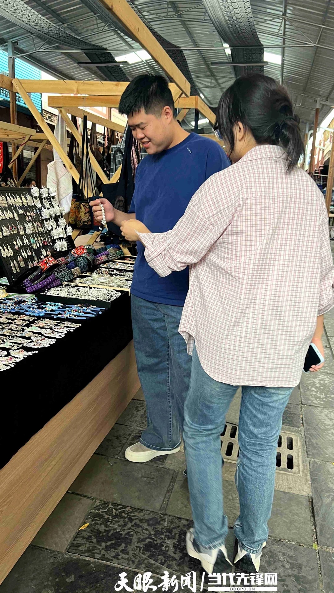 据几位老摊主介绍,这里的手镯、银饰与苗装,过去多是压箱底的传家宝或嫁妆,每一件都承载着独特的故事,而这份沉淀的情感,恰恰击中了当下消费者的内心,现场不少消费者感慨:“这样一件承载着苗侗文化又时髦的手工商品,确实比一些品牌服装更值得入手。”