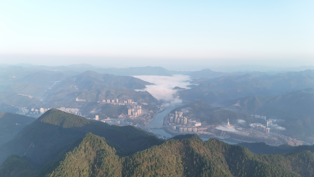 秋日贵州剑河现平流雾景观 云雾缭绕美如画