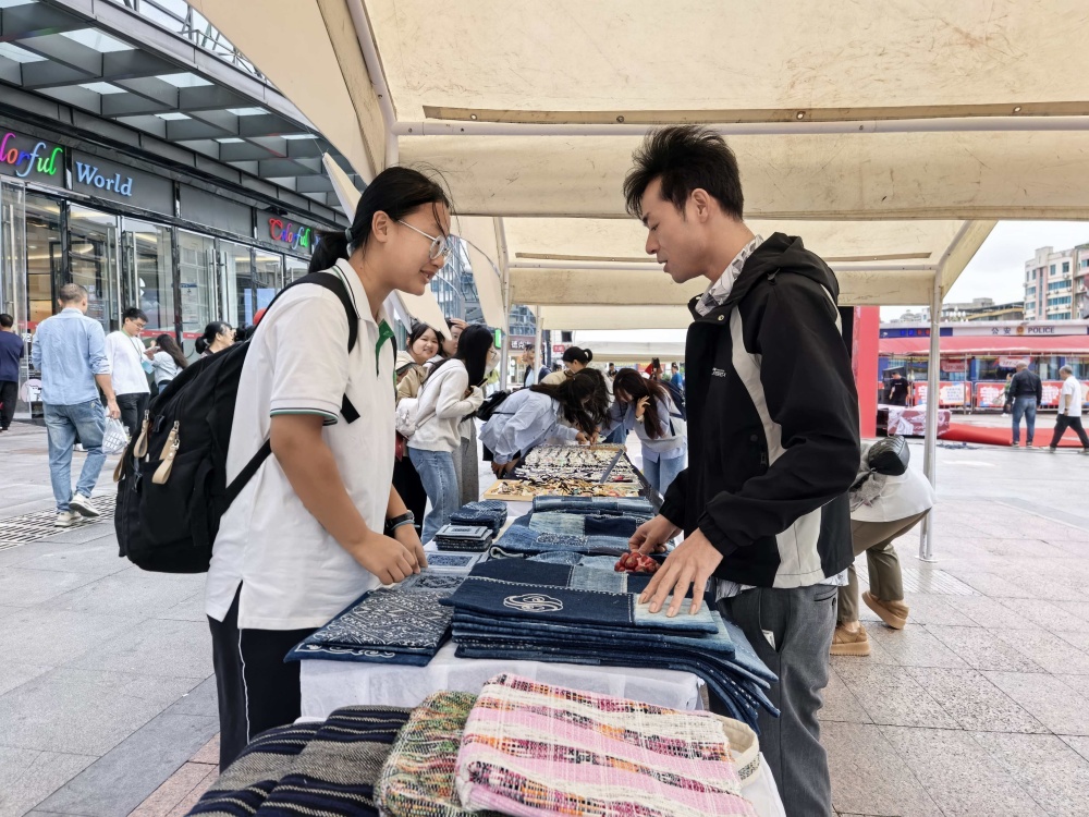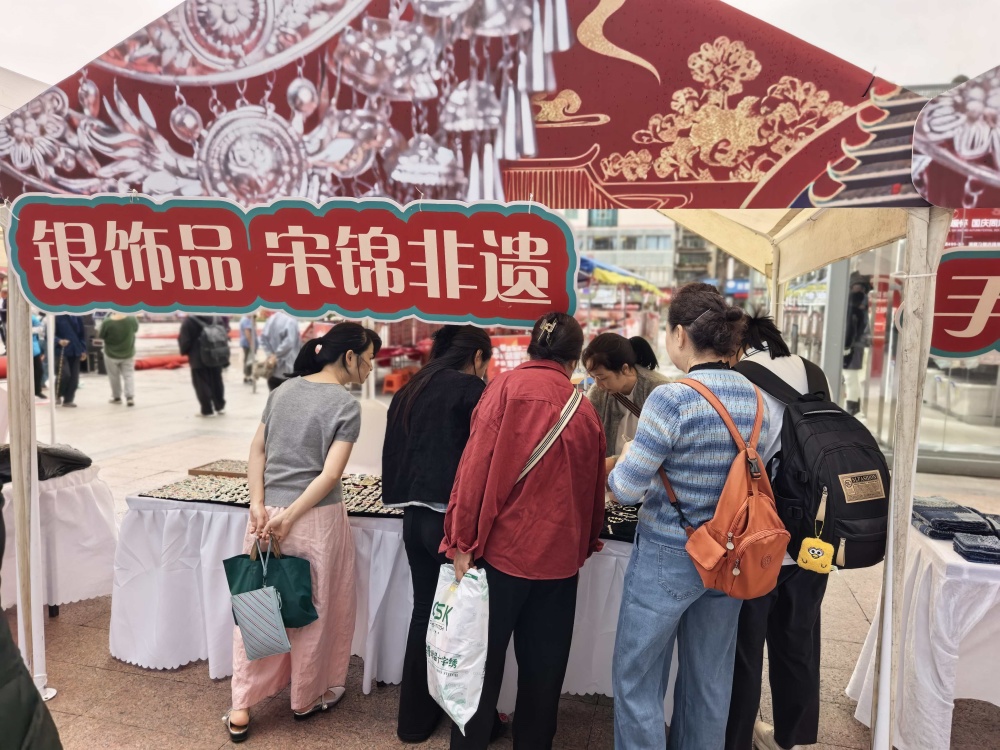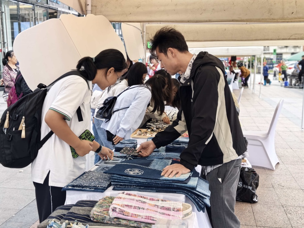 吴泳章是黎平县尚重人,今年第一次参加酸汤节。他和妻子在绣里淘开店已有四年,每月收入一万元左右。此次酸汤节,吴泳章敏锐地捕捉到商机,在国贸广场摆起了非遗手工艺品摊位。他感慨道:“感谢市委市政府开展这么好的活动,让我们能够有机会赚到更多的钱。”