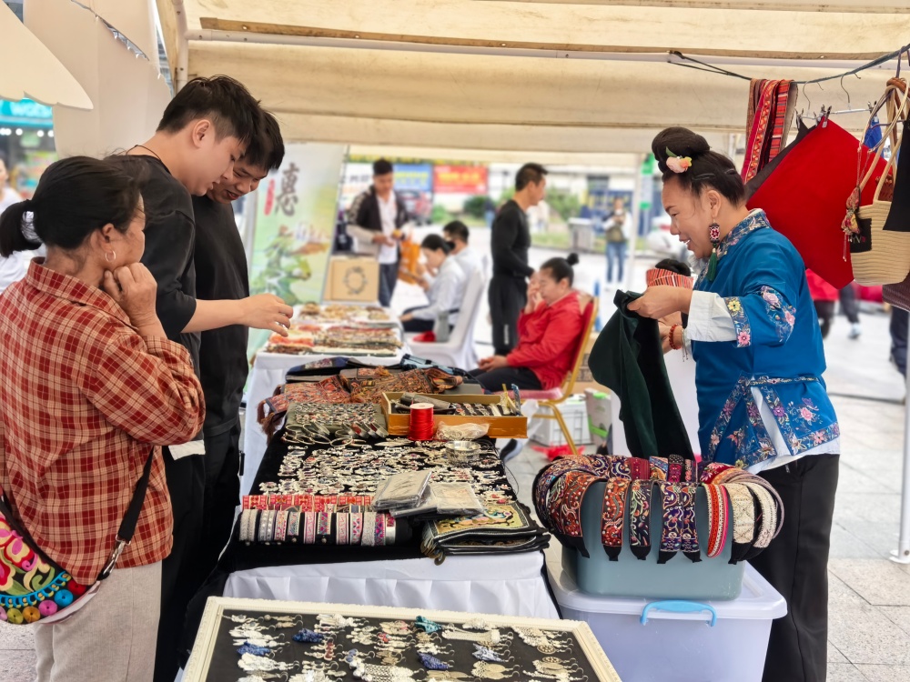 同样抓住商机的还有43岁的雷英,她来自黄平县翁坪乡,一直在风情园绣里淘摆摊。今年国庆以来,她自己加工的非遗手绣手工发夹销售情况良好,此次参加酸汤大会,销量更是比平时增加了三倍。雷英激动地说:“感谢主办方邀请参加酸汤大会,让我有了更好的销售平台。”