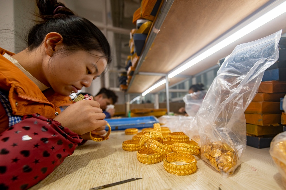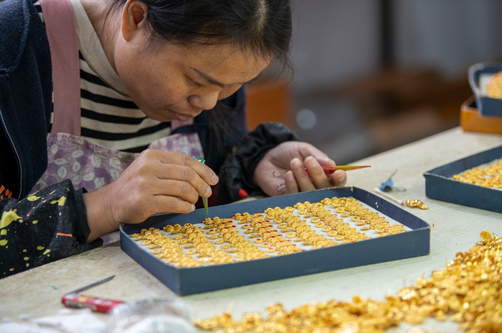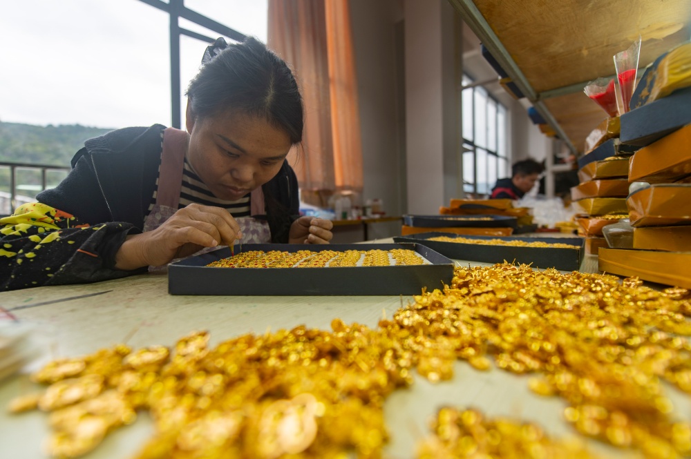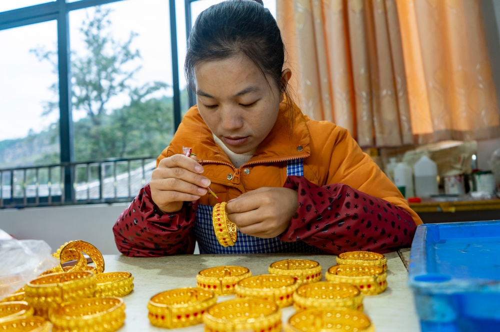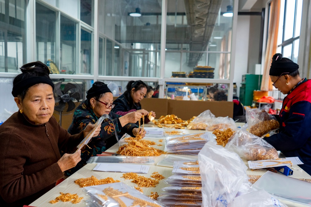 连日来,贵州省黔东南苗族侗族自治州从江县洛香镇井当社区一家饰品加工企业开足马力赶制来自非洲、印度、阿拉伯地区等的批量订单,满足海外市场需求。