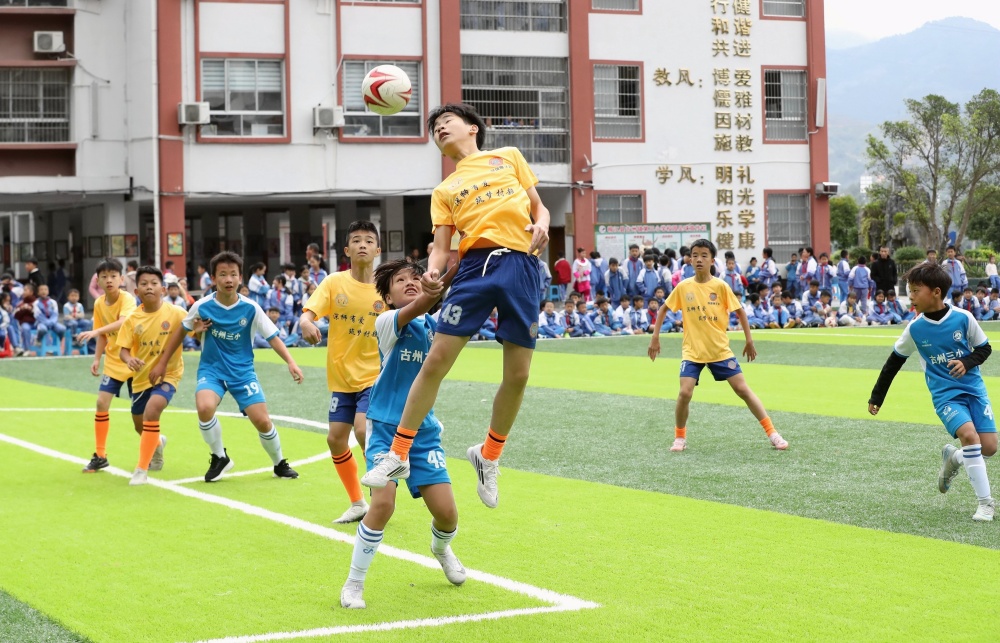 近年来,贵州省黔东南苗族侗族自治州榕江县古州镇第三小学十分注重校园足球运动,通过系统培训增强校园体育氛围,促进班级足球竞技,提升学生对足球运动的兴趣爱好,弘扬体育精神和班级团队精神,筑牢中华民族共同体意识,让学生在绿茵场上感受足球运动的快乐。
