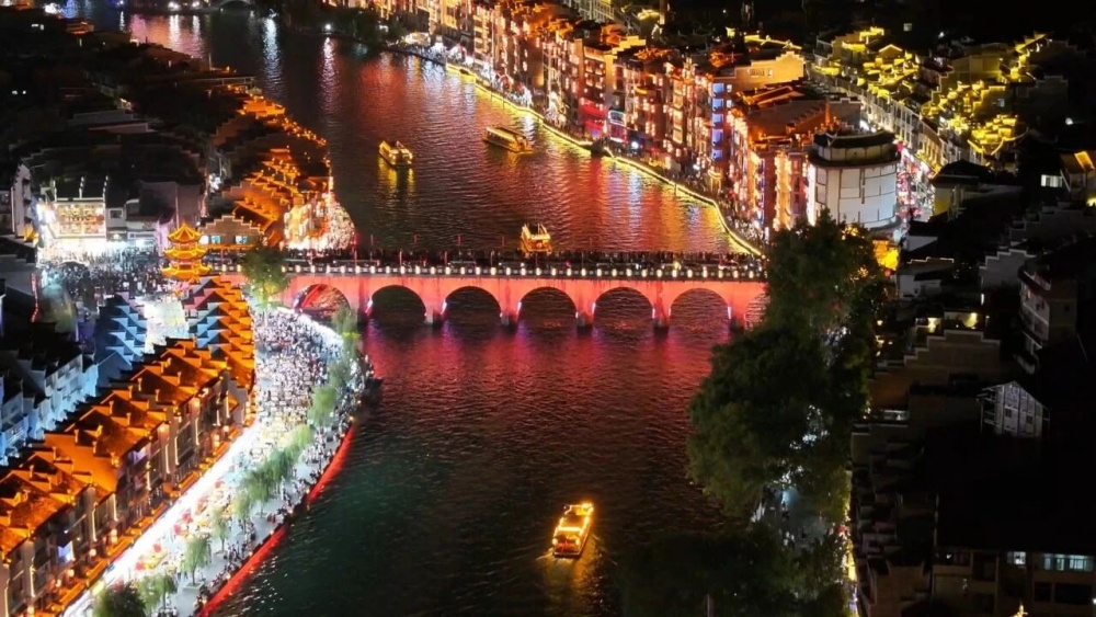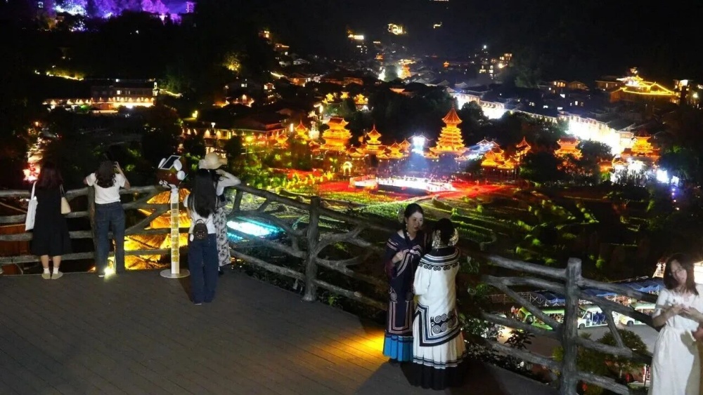 在深山里的肇兴侗寨景区,层林尽染的秋天让这个千年侗寨更显静谧与古朴。鼓楼、风雨桥、吊脚楼错落有致地分布在村寨中,家家户户的屋檐下挂着灯笼,随着夜色渐深,灯笼亮起,整个侗寨笼罩在温暖的光晕中。“刚走进侗寨,就被这里的建筑和氛围吸引了,太有特色了。”来自广东的游客林月拿着手机,不停地拍摄着侗寨的夜景。鼓楼前的广场上,当地村民正准备表演侗族大歌,悠扬的歌声在夜空中回荡,吸引了不少游客驻足观看。“侗族大歌不用伴奏,声音特别纯净,听着特别舒服。”游客王合志一边听着歌,一边赞叹道。在侗寨的小巷里,不少商铺售卖着蜡染、银饰等手工艺品,游客们穿梭其间,挑选着心仪的纪念品。“我买了一块蜡染布,图案很精美,打算回去做个桌布。”来自上海的游客刘璃拿着刚买的蜡染布,开心地说。