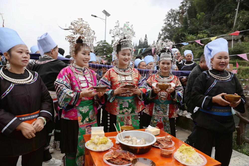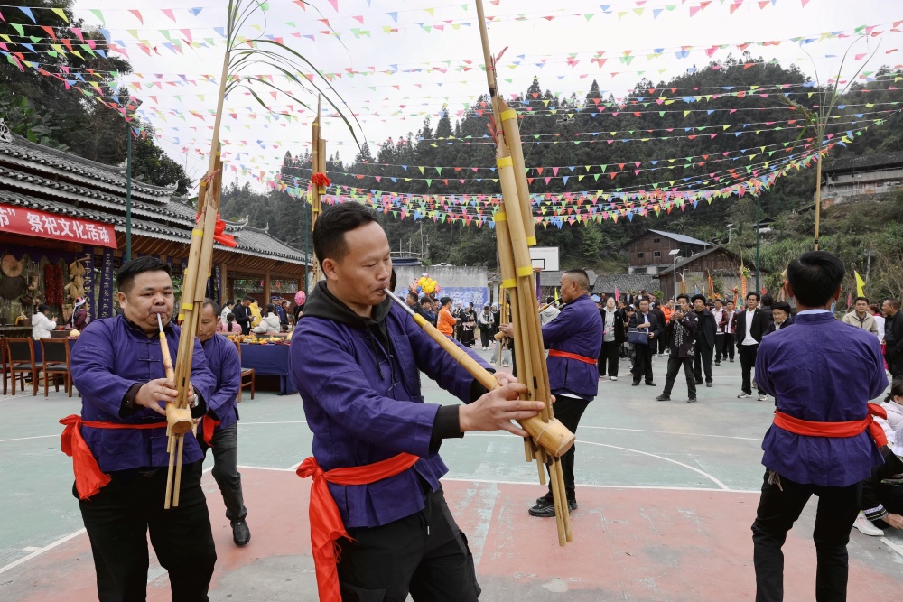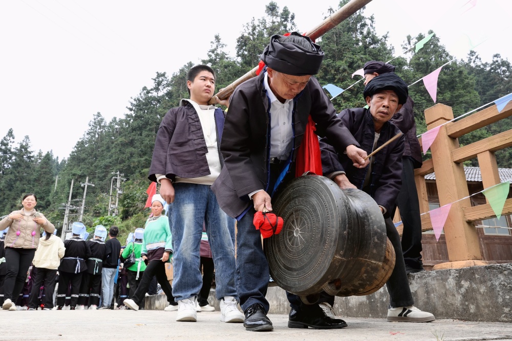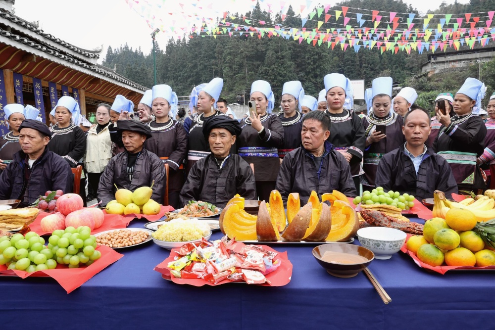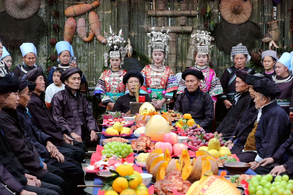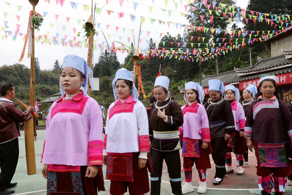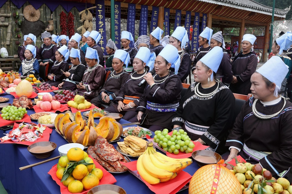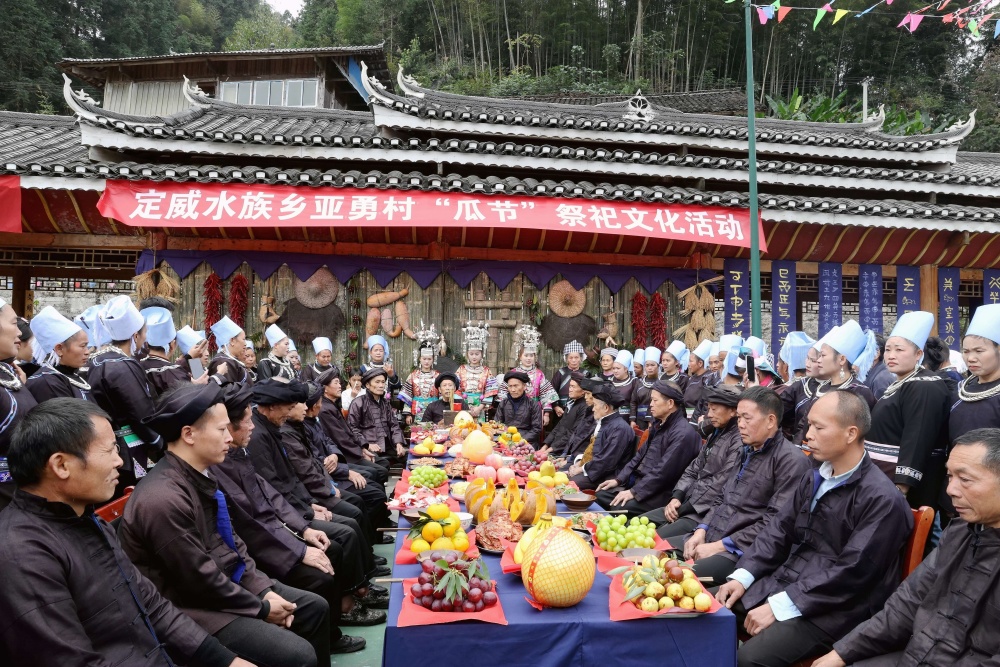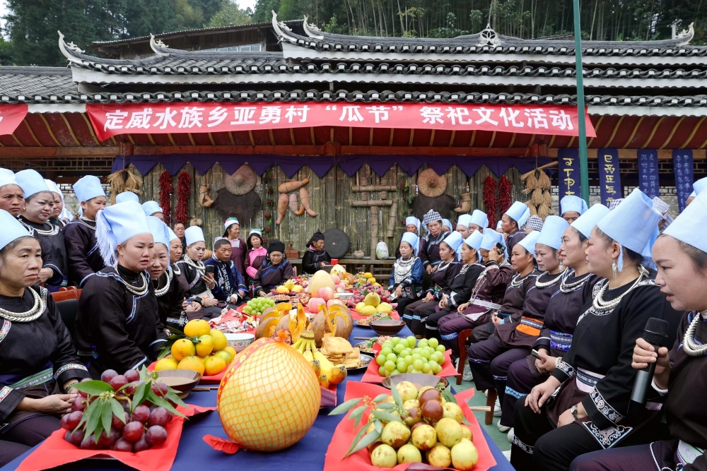 10月25日,在贵州省黔东南苗族侗族自治州榕江县定威水族乡亚勇村,水族群众在瓜节祭祀仪式上祈祷来年风调雨顺,幸福安康。