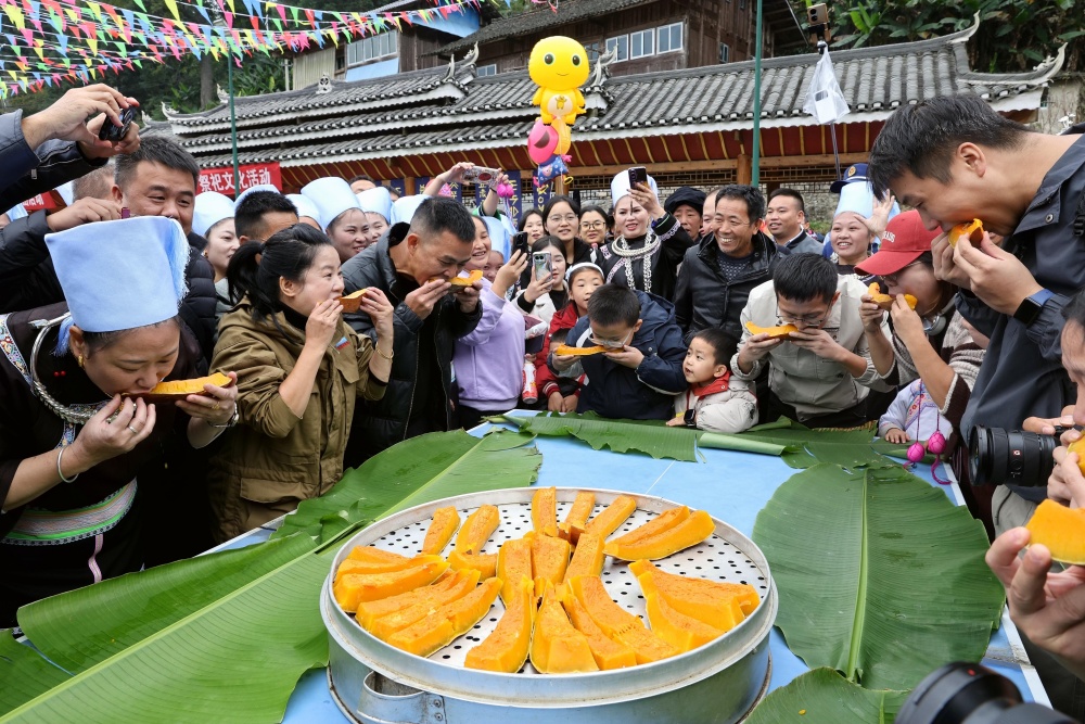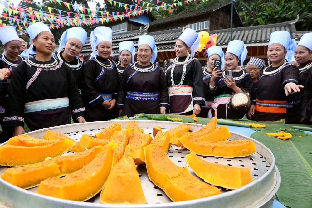 当日,贵州省黔东南苗族侗族自治州榕江县定威水族乡亚勇村,水族同胞迎来了一年一度的瓜节。瓜节期间,她们还邀请周边村寨的苗族群众一起吹芦笙、跳芦笙舞、对歌、吃南瓜比赛等,载歌载舞共庆瓜节。