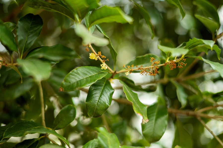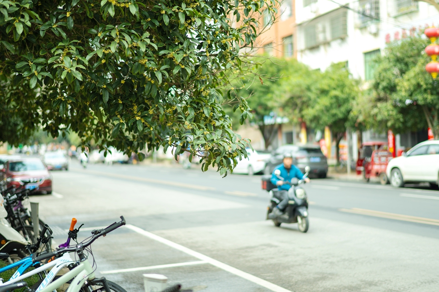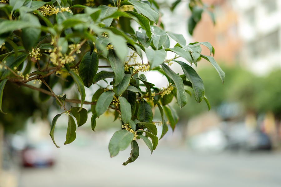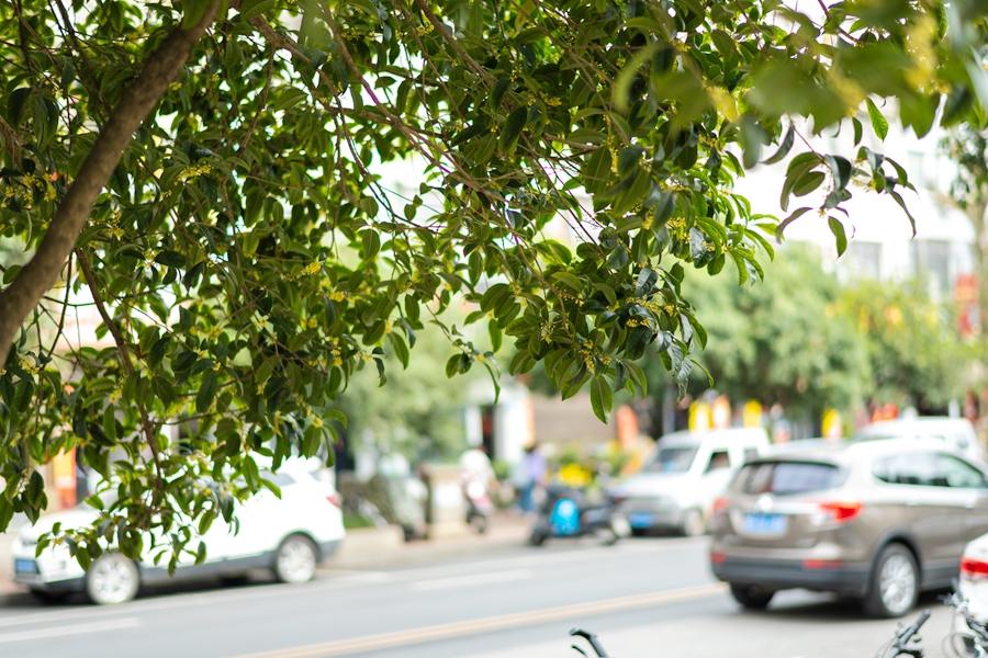 10 月下旬,贵州省黔东南州岑巩县街头巷尾的桂花再度绽放,为秋日的小城披上一袭金色的“香衣”。记者在大园路、迎宾路等景观街道看到,金桂、银桂等品种的桂花竞相吐蕊,簇簇金黄点缀在翠绿的枝叶间,微风拂过,清香四溢,沁人心脾。