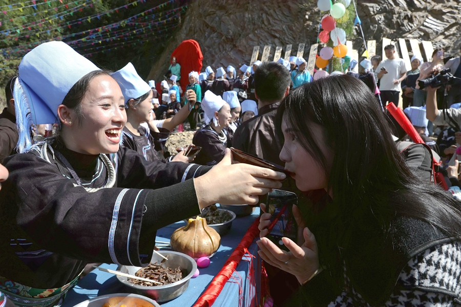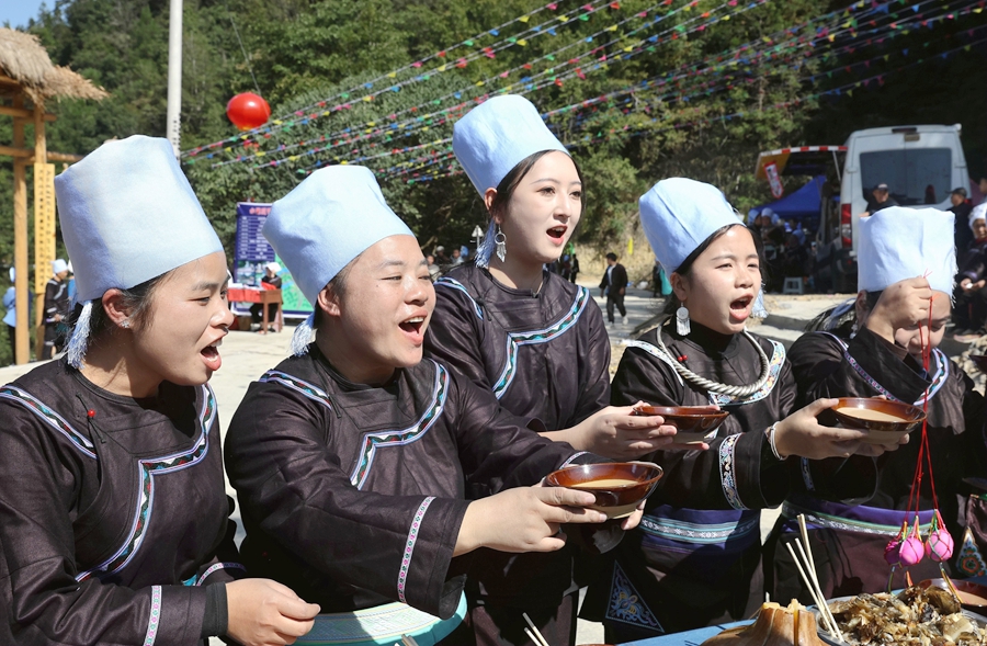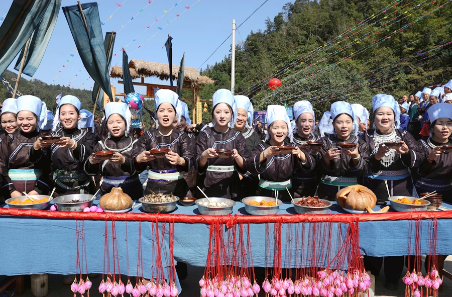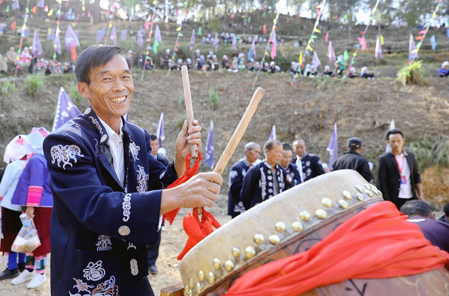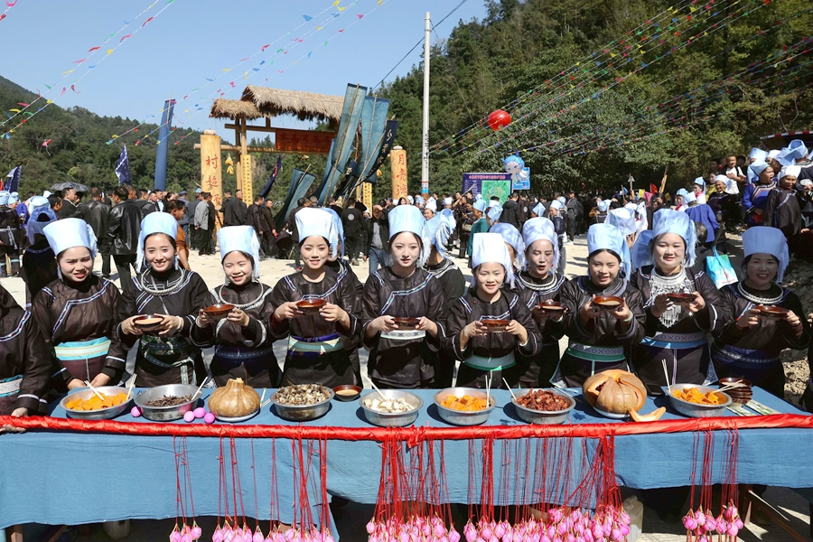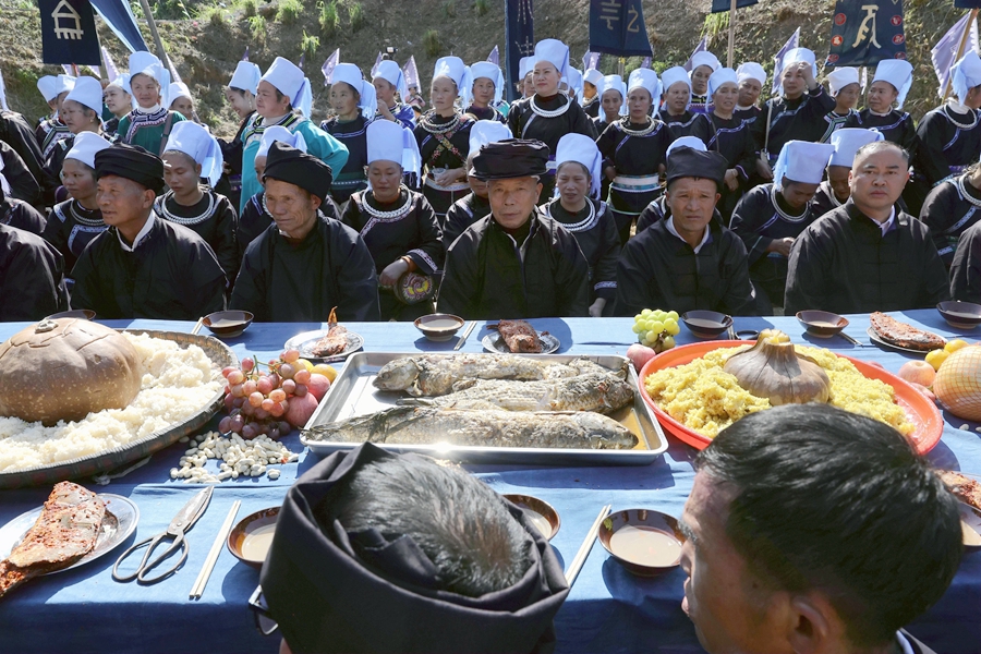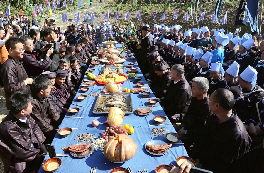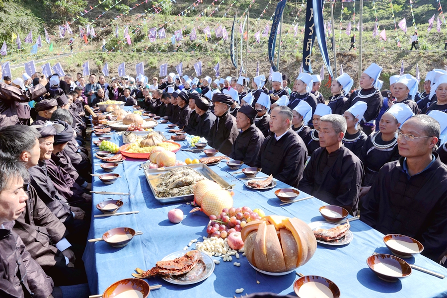 10月28日,在榕江县水尾水族乡水尾村,水族同胞在瓜节举行祭祀活动。