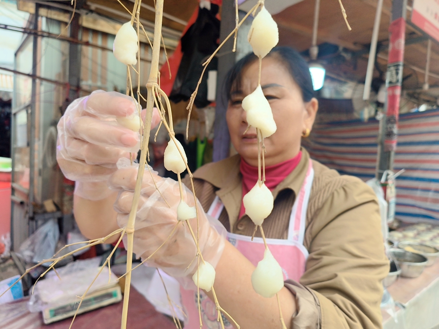 “我们非常喜欢老街的生活,在这里摆摊近十年了,卖糍粑,我们的糍粑都是现做的,街坊领居都喜欢,一天可以卖2000多,节日时卖得更多。”老摊主李志胜说道。