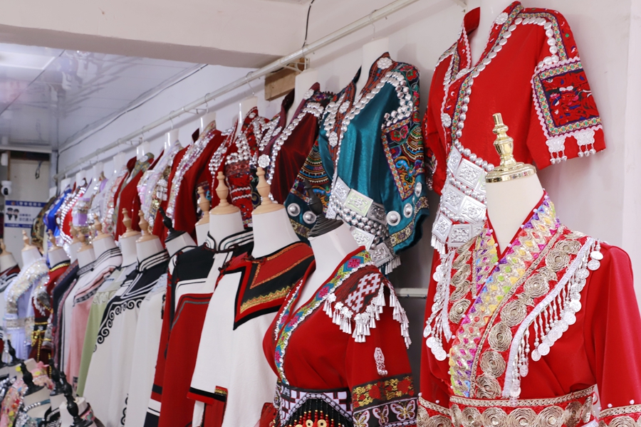 老街上,粑粑、酸汤粉、米豆腐、糖果等摊位沿街整齐排开,杂货铺、竹器店、银饰铺、民族服饰店、刀具铺琳琅满目,“姨妈,进来看一看衣服”、“糍粑,手工糍粑”、“新鲜的水果”、“磨刀具”、“糖葫芦”·····,叫卖声、讨价声此起彼伏,十分热闹,小时候上街赶场的场景依然在这。