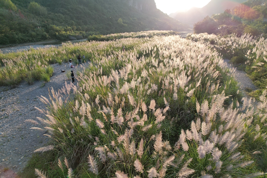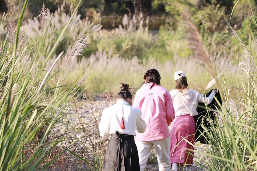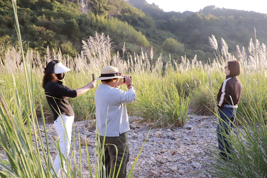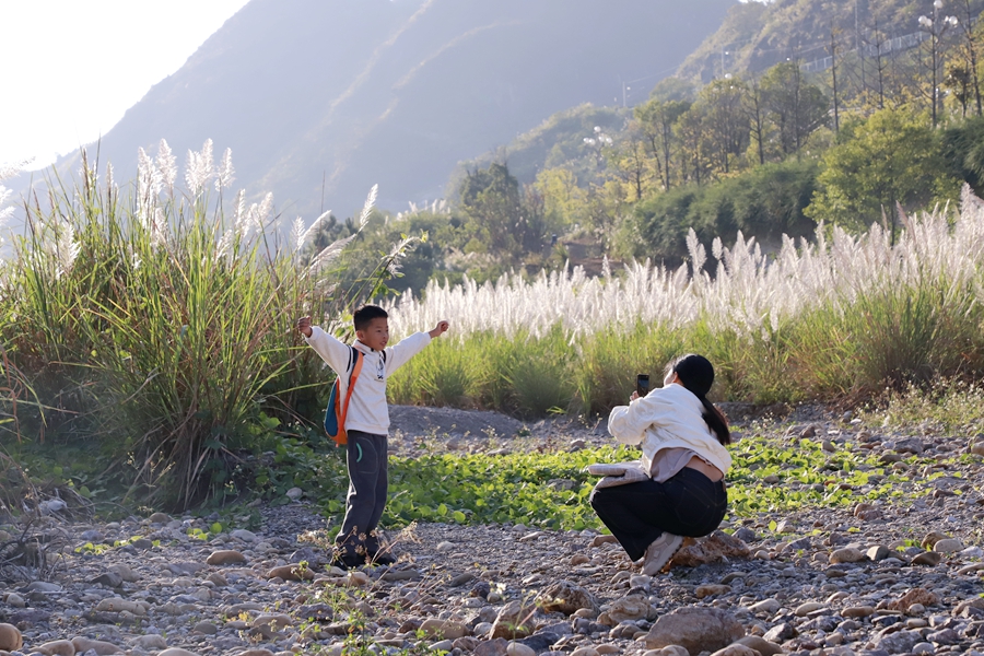“入秋后,我们姐妹几个一直在凯里周边寻找适合拍照的地方,最近发现了滨江大道这片芦苇荡,真的太出片了!”正在芦苇丛中拍照的雷芷涵笑着说道,“这儿沙滩干净,江水清透,特别适合拍秋日主题的短视频。我们拍了不少素材准备发抖音,周末还打算带孙子一起来走走,让他也感受一下秋天的气氛。”