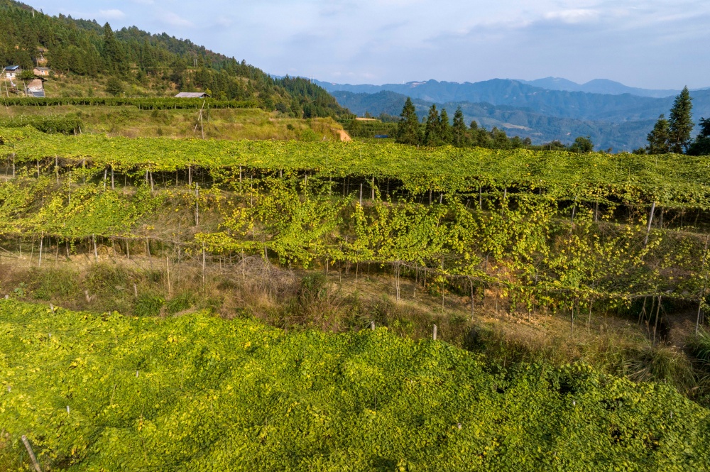 10月29日,在贵州省从江县谷坪乡银下侗寨拍摄的罗汉果种植基地(无人机照片)。