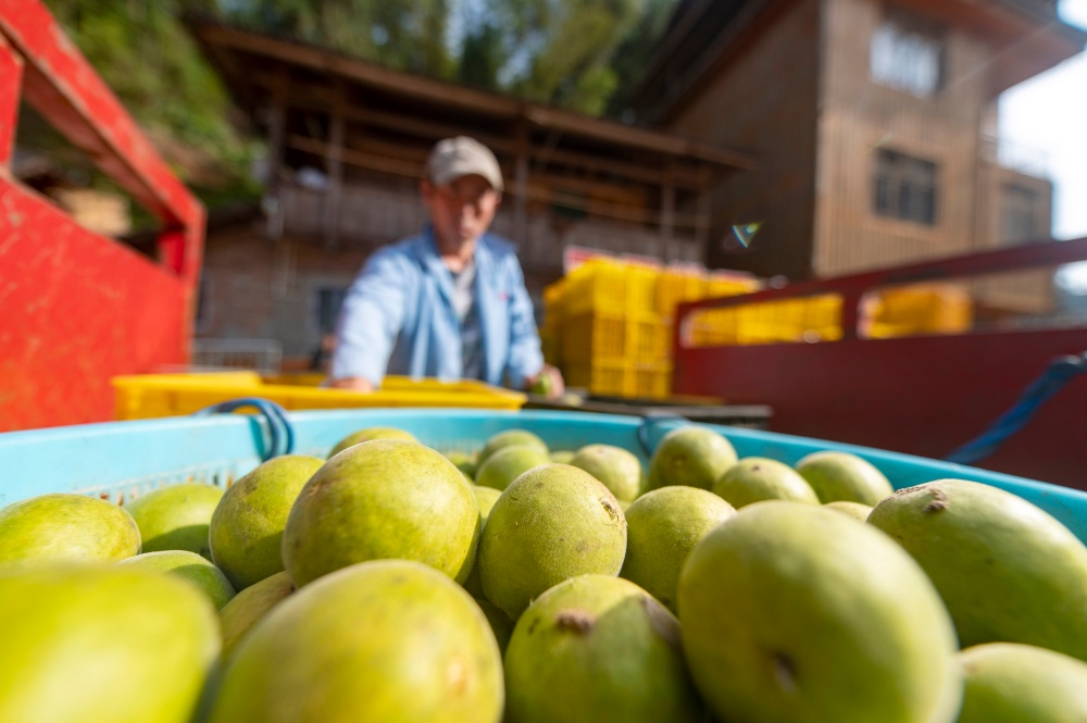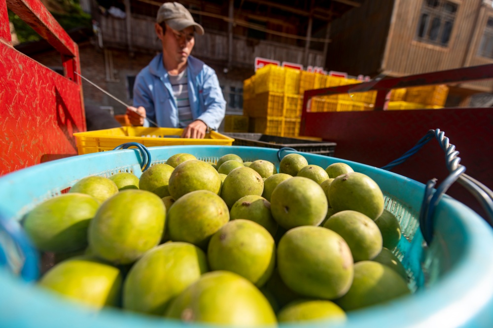 深秋时节,贵州省黔东南苗族侗族自治州从江县谷坪乡银下侗寨种植的罗汉果迎来收获季,村民和客商忙着采摘、搬运、分拣、销售,一片丰收景象。