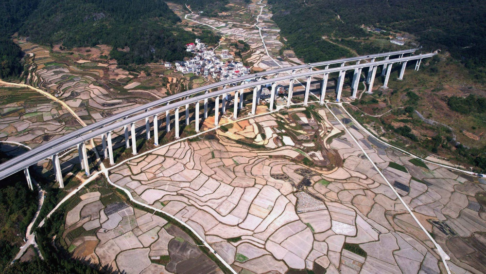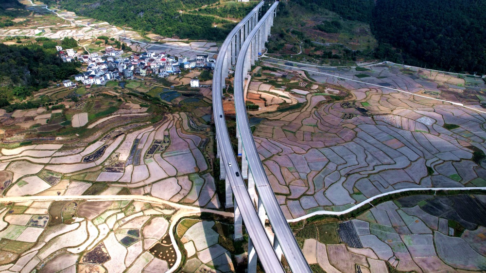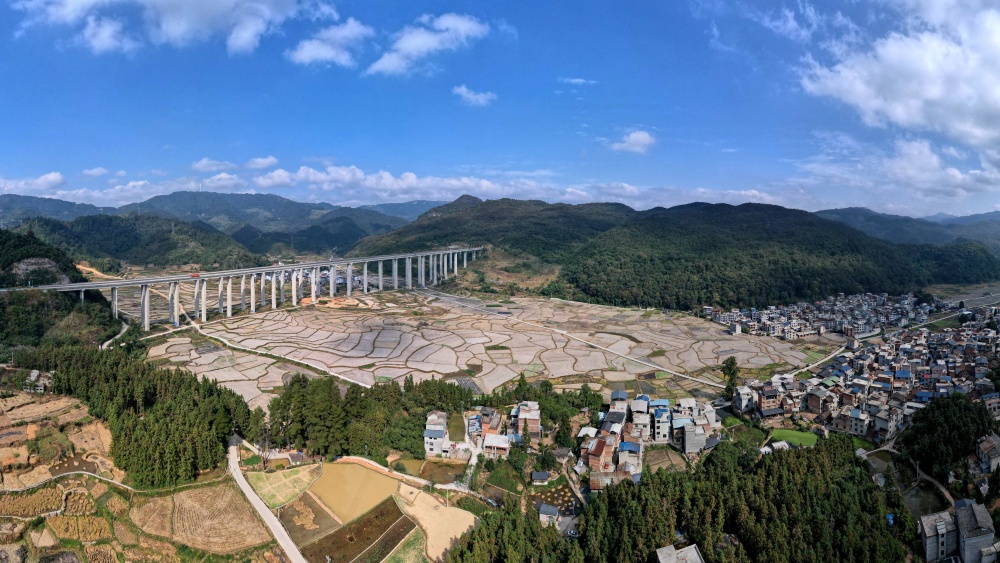 秋收时节,贵州省黔东南苗族侗族自治州从江县洛香镇上皮林村连片梯田收割完成,稻田、青山、民居相映成趣,呈现出蜿蜒层叠、层次分明、线条优美、连绵起伏、绚丽多彩,形成了一幅幅惊艳的“七彩”山水田园画卷。