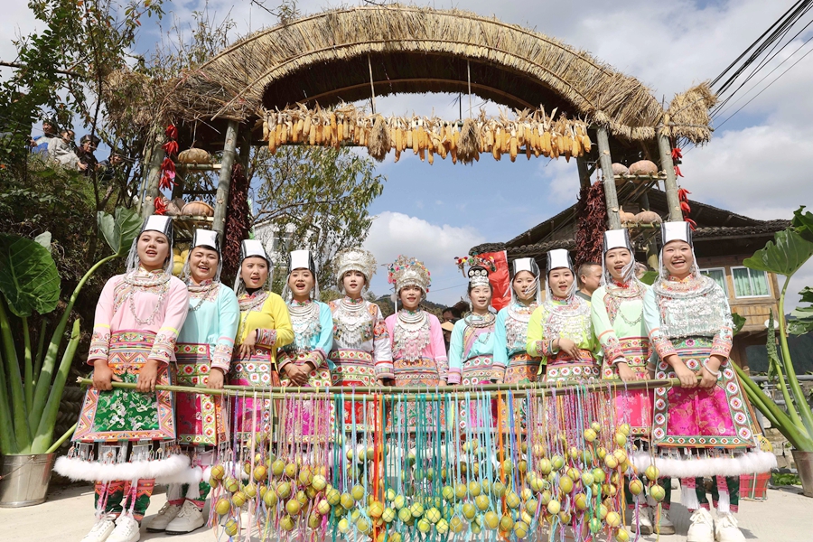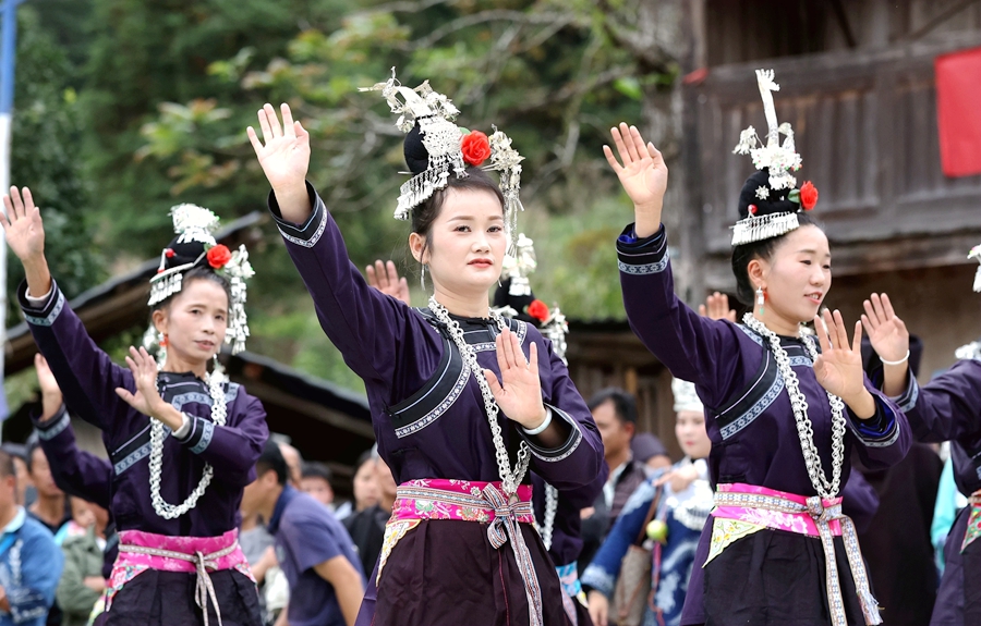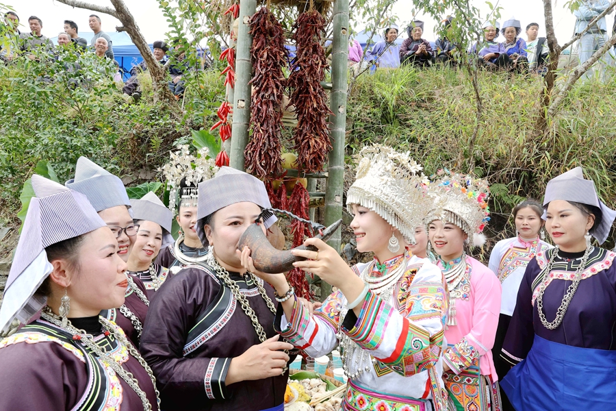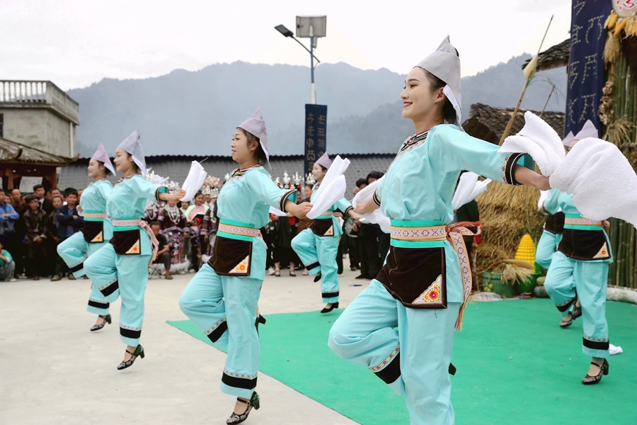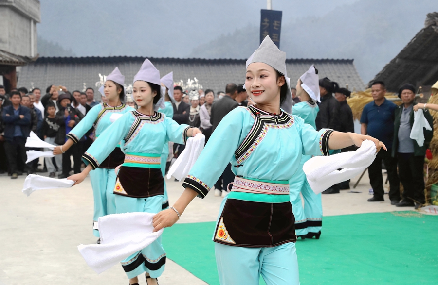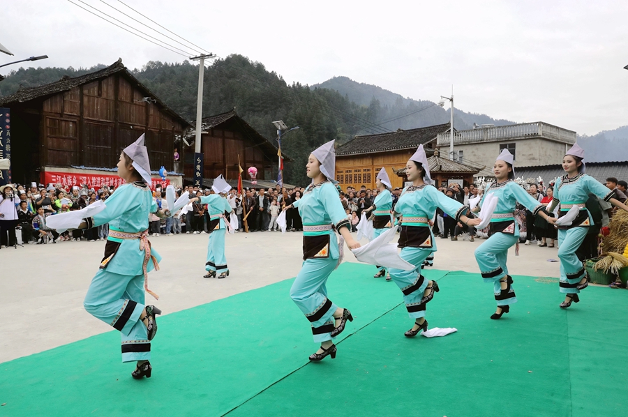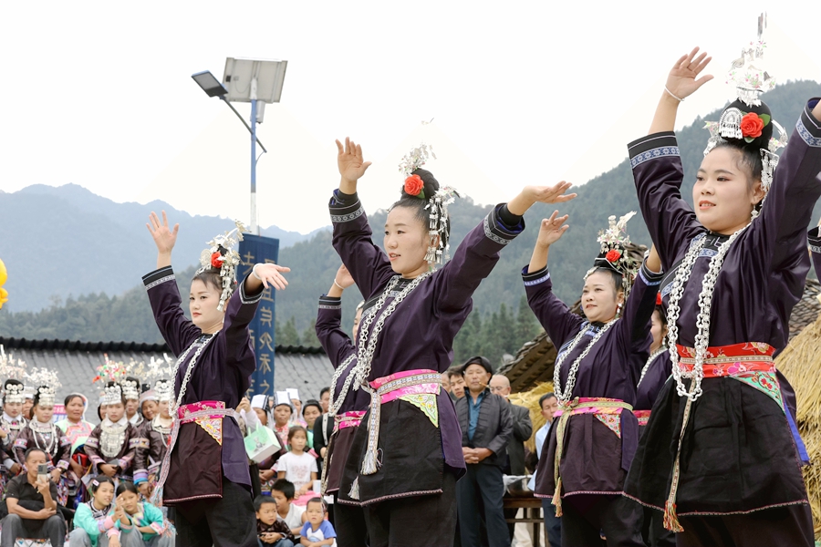 为庆祝丰收,贵州省黔东南州苗族侗族自治州榕江县三江水族乡冷衣村的水族、苗族群众通过民族歌舞表演、吹芦笙、跳芦笙舞、捉鱼、农特产品展示等,以开展丰富多彩的民族文化活动庆丰收,吸引周边村寨村民和游客前来感受丰收的欢庆氛围。