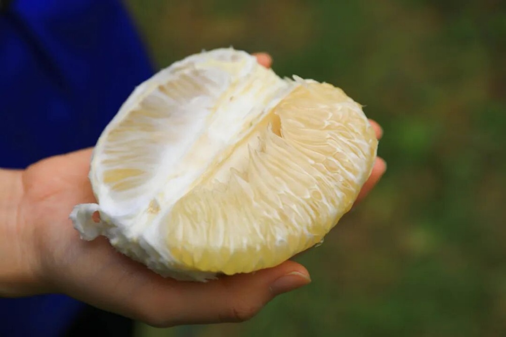 南明小香柚自2021年开始挂果,独特的风味使其迅速打开市场。该品种单果重约1.5至2斤,果肉脆嫩多汁,既保留了传统苦柚的两分清苦,又增添了蜜柚的甘甜,可徒手剥食不沾手的特性更受消费者青睐,若手速慢,更是“一果难求”。