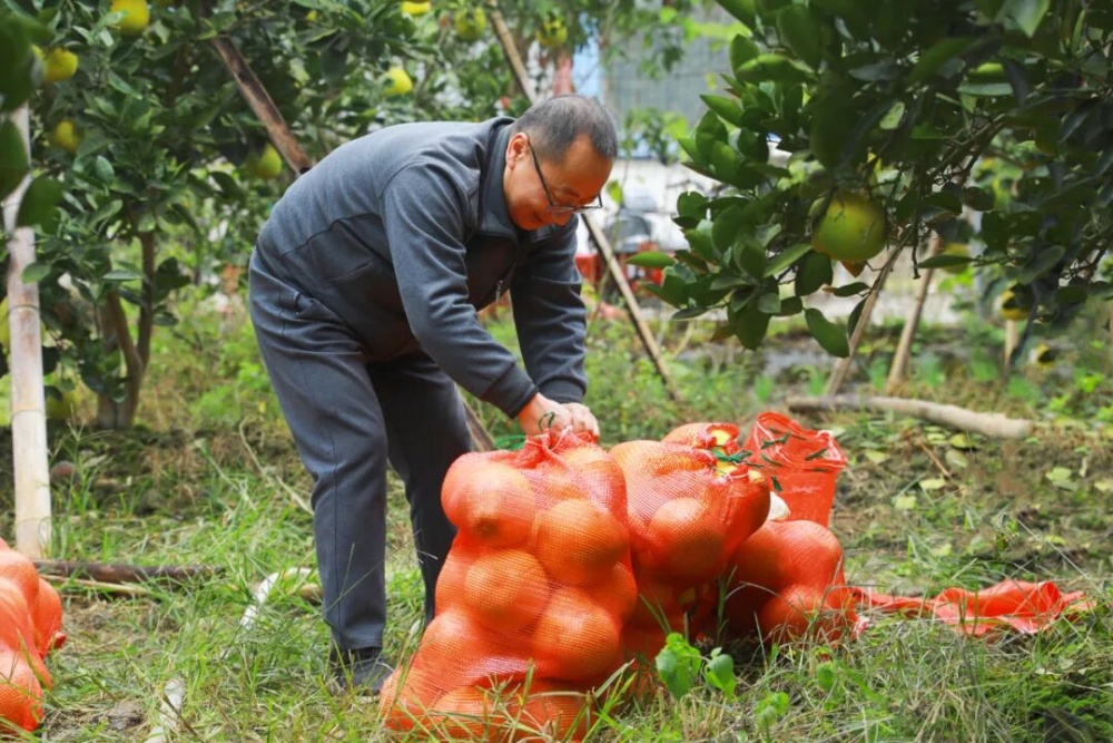 立冬的风还在山外打转,南明镇已把最后一抹秋色锁进柚皮。走进永兴村香柚种植园,清冽果香扑面而来,金灿灿的小香柚缀满枝头,圆滚滚的身子在阳光下晃呀晃。工人们穿梭在柚林间,手法娴熟地采摘着成熟的香柚,随后分拣、打包,将这份甜蜜的果实运往各地。