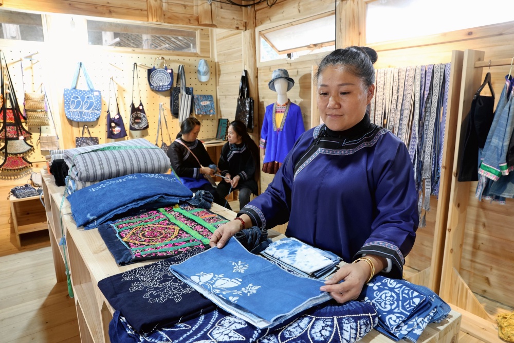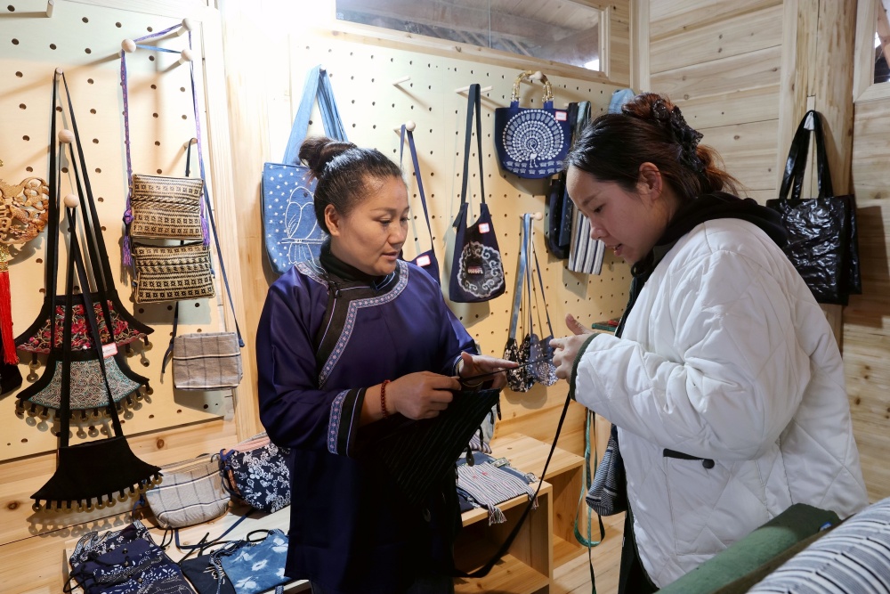 自2023年5月“贵州村超”赛事火爆出圈以来,榕江县依托“村超”IP赋能,依托“体育+文旅”模式,将“村超”流量引入旅游村寨,激活乡村经济活力,助力群众增收致富。据大利村驻村第一书记胡希介绍:2023年5月以前,村里仅有12家民宿,截止2025年10月,民宿增加到了56家,床位增长到500余张。为进一步提升旅游业态,该村鼓励村民积极参与民宿经营、餐饮服务以及侗族刺绣、纺织工艺产品、非遗蓝染等文创系列老手艺产品,助力村民家门囗增收。该村侗族妇女杨正仙,借助“贵州村超”引流,在寨中的鼓楼边开办“斗萨纺织刺绣工艺工坊”生产非遗文创系列手工艺产品,并将文创产品订单分发给其他妇女生产,产品销往上海、北京等地,在带动村民增收的同时,她收入达13万余元。
