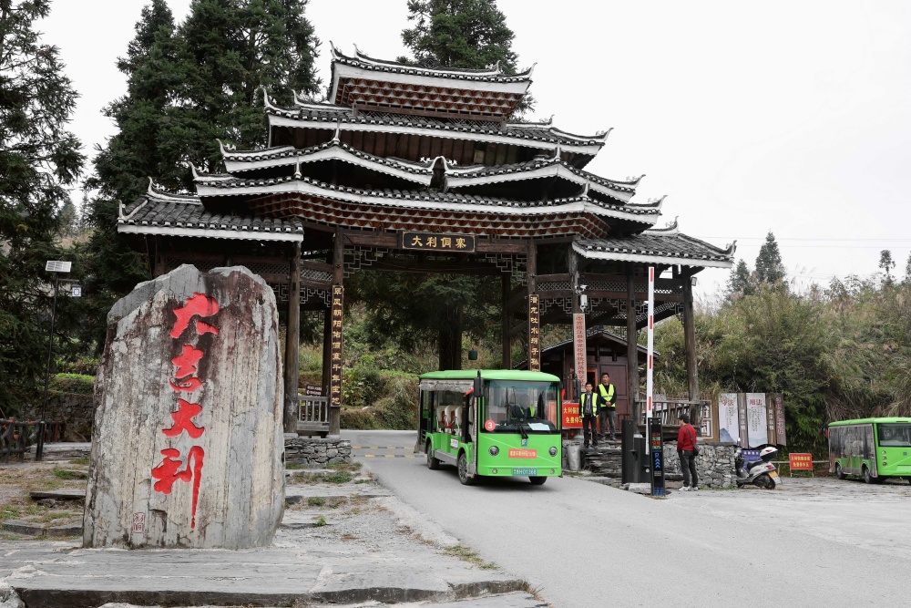 大利有600多年历史的侗族古村落,是“中国第一批传统村落”和贵州省乡村旅游重点村,寨内清代石板古道、侗族四合院、风雨桥、古晾禾谷仓等古建筑错落有致,还三叠飞瀑等自然景观,构成了一幅“一步一景”的美丽乡村画卷。为破解游客出入不便的难题,助力乡村旅游提质,该村于今年5月以村民筹资入股的方式推出摆渡车服务,初期投入3辆摆渡车运营,国庆期间根据客流增长新增2辆,目前5辆摆渡车已成为景区便民服务的重要载体。在分红现场,村民杨通孝拿着2000多元分红款高兴地说:“摆渡车让我们在家就能尝到了旅游发展的甜头。”