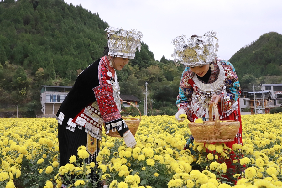 当前,凯里市下司镇马场村的30多亩南农金菊进入盛花期,一片金黄的花海,吸引着客商、游客前来采购、拍照打卡。