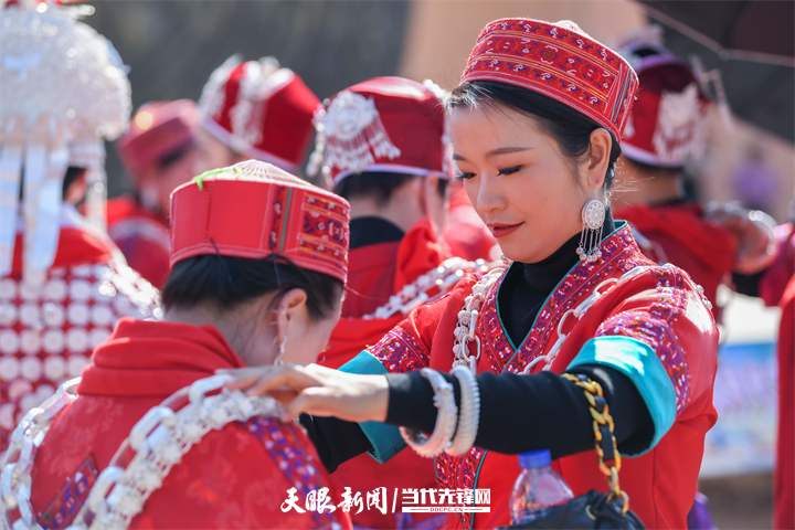 午后,游行队伍在芦笙声中蜿蜒前行。姑妈们身着精美刺绣盛装,头戴传承数代的银饰,在阳光下汇成一道流动的风景。道路两旁,娘家人早早守候,翘首以盼的身影中满是对亲人的牵挂。